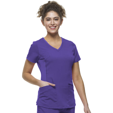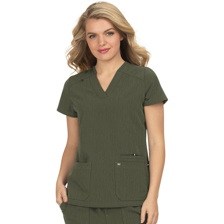 KOI Women's Three-Pocket Wide V-Neck Stretch Hustle and Heart Top