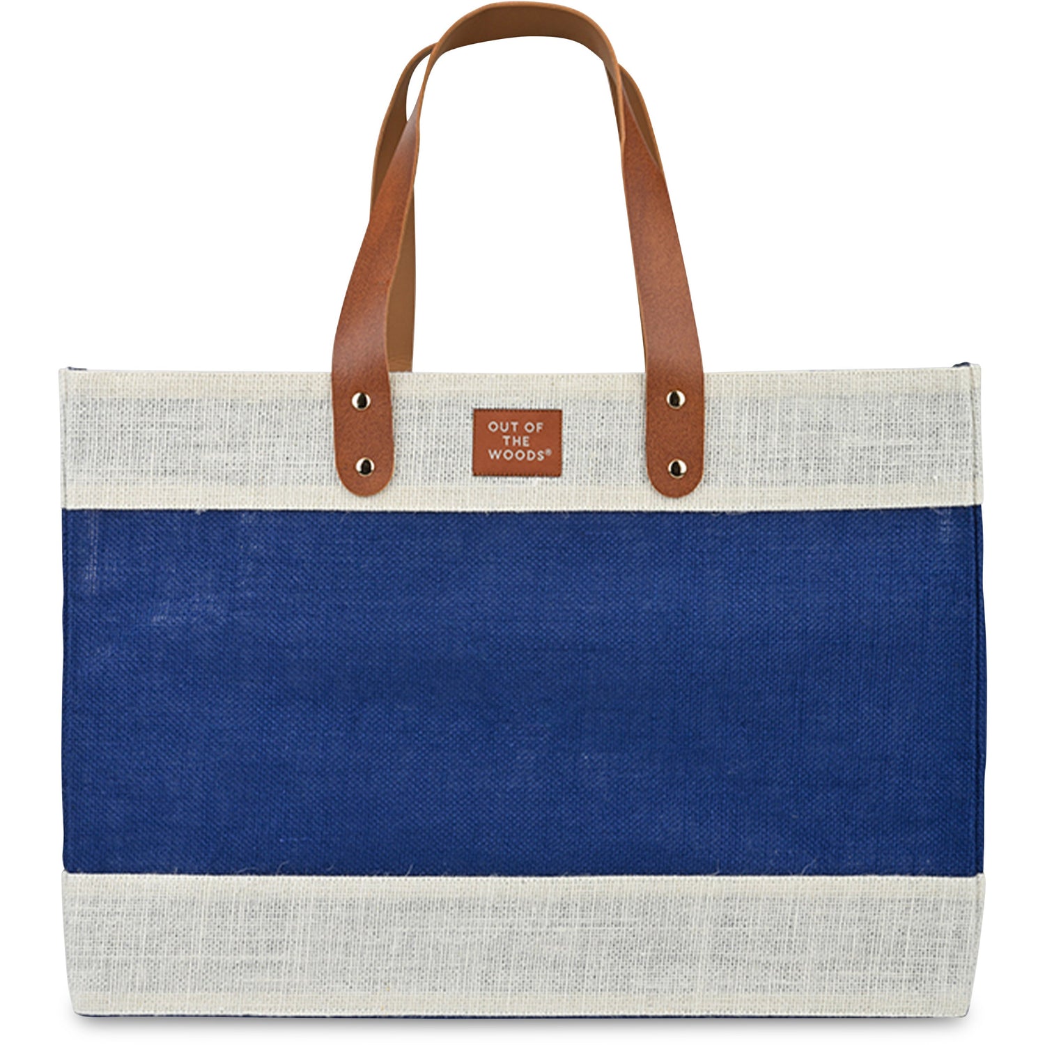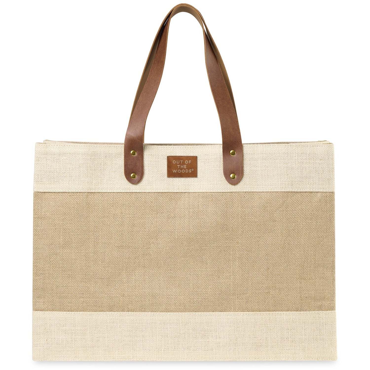 Natural style, everyday utility. The Out of the Woods® Jute Market Tote is crafted from renewable, biodegradable jute with sturdy vegan leather handles and rivet reinforcements for durability. Spacious enough for market trips, errands, or beach days, it includes an interior pocket for organization and cream accents for timeless style. PVC free.