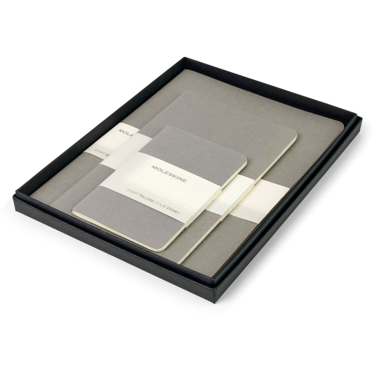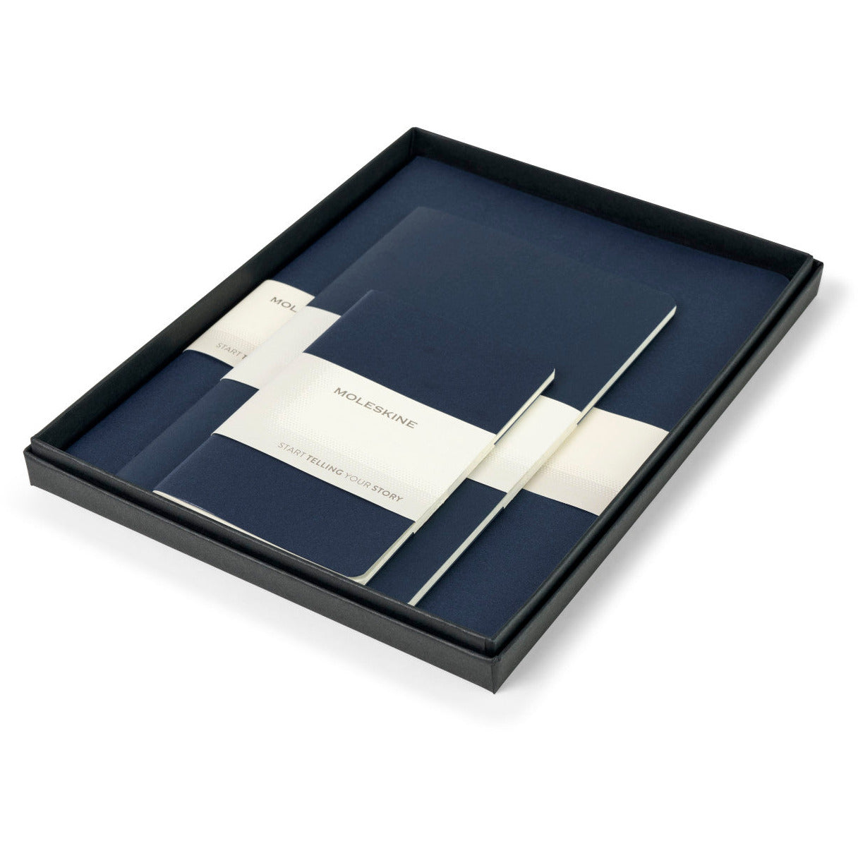 Elevate your gifting with this versatile set of three Cahier Ruled Journals—Pocket, Large, and X-Large—packaged in a premium two-piece Moleskine gift box. Lightweight and flexible, they’re perfect for organizing tasks, ideas, and projects. Shrink-wrapped for easy gifting. FSC® certified and PVC-free, made with responsibly sourced materials. Gift box dimensions: 8.125L x 10.5625H x 0.875W. A thoughtful, sustainable choice for everyday writing.