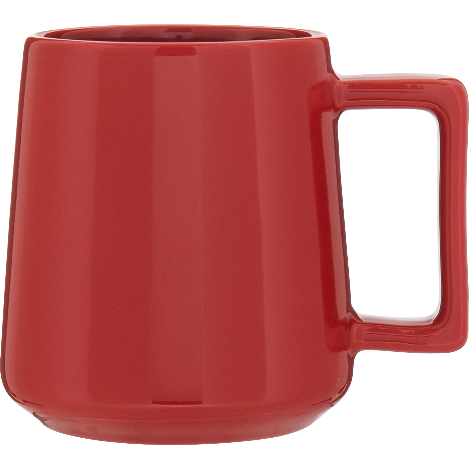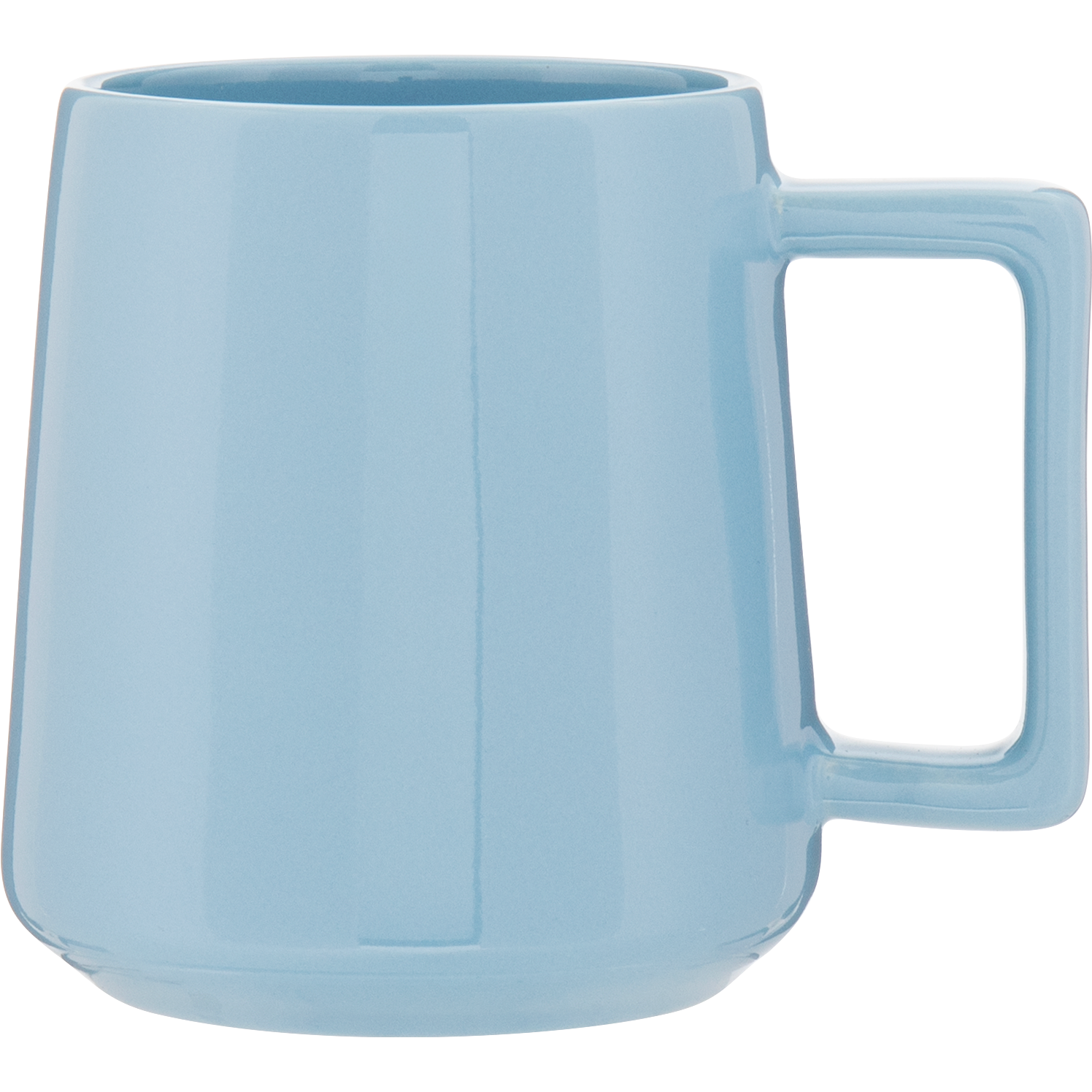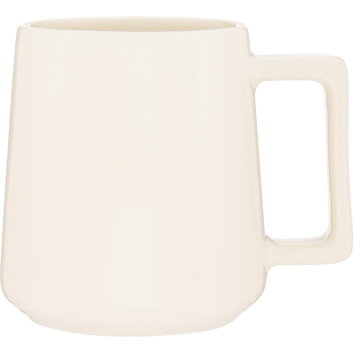 The Jude 17 oz ceramic mug offers a classic, polished look for everyday coffee, tea, or cocoa. Featuring a glossy colored exterior and a matching glossy interior, it brings a bright, unified style to any kitchen, office, or café setting. Perfect for morning routines or as a custom branded gift.