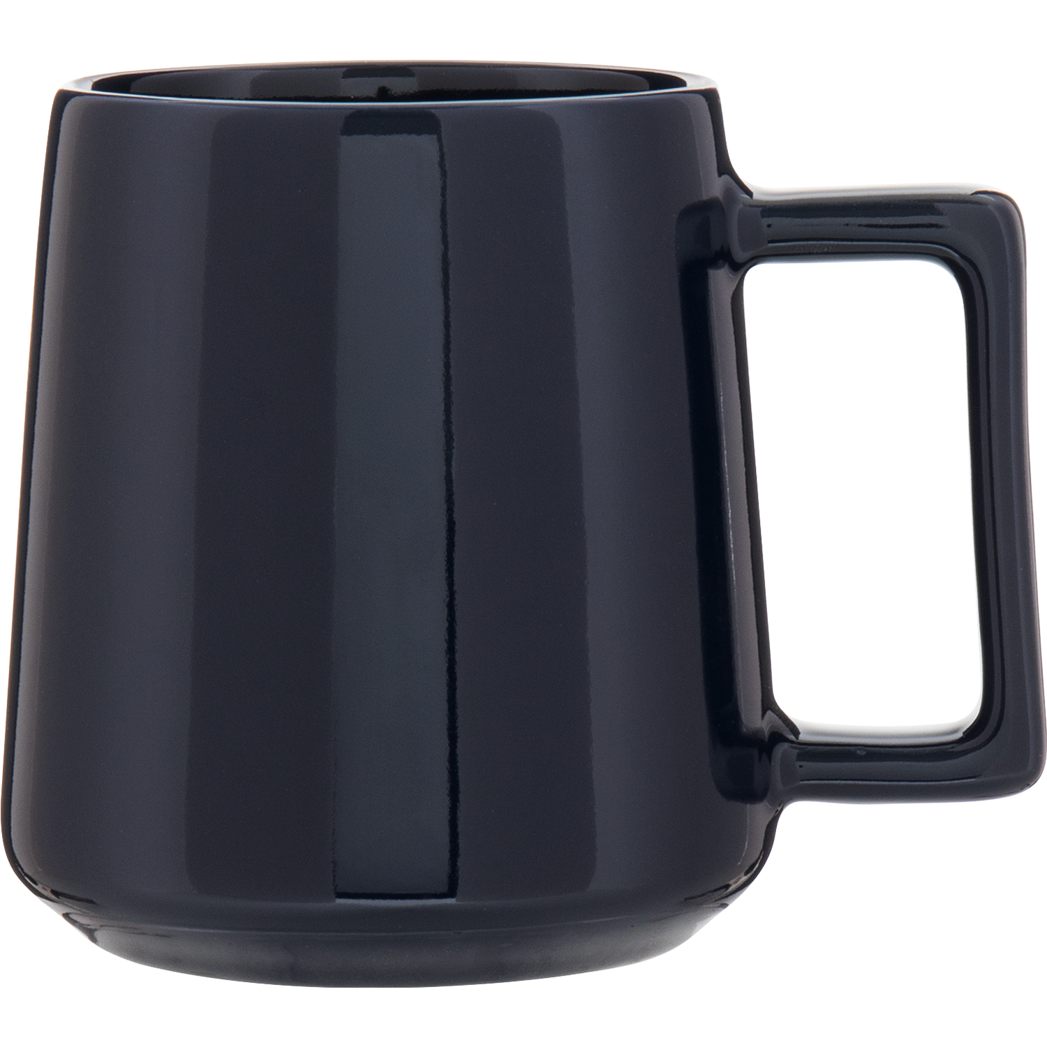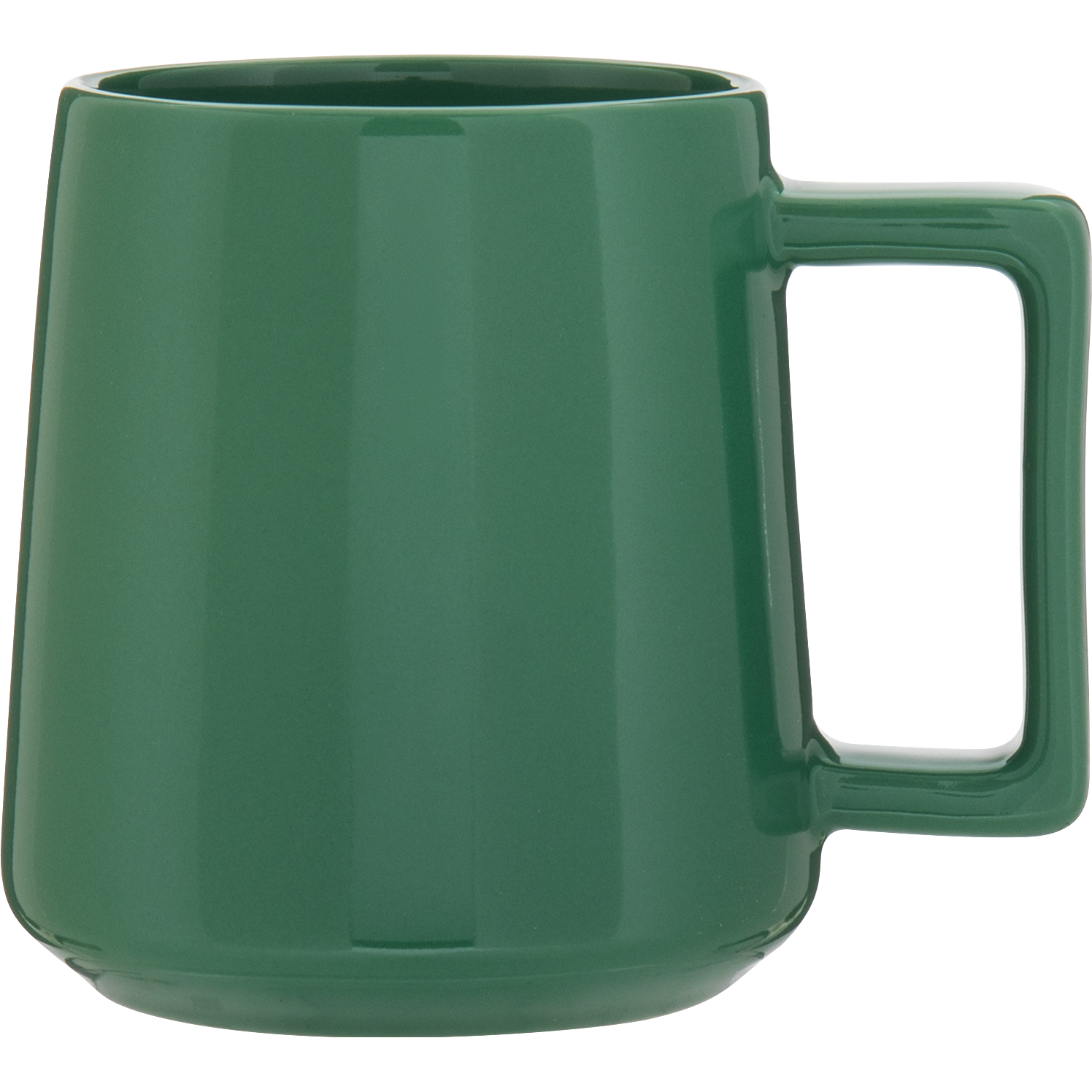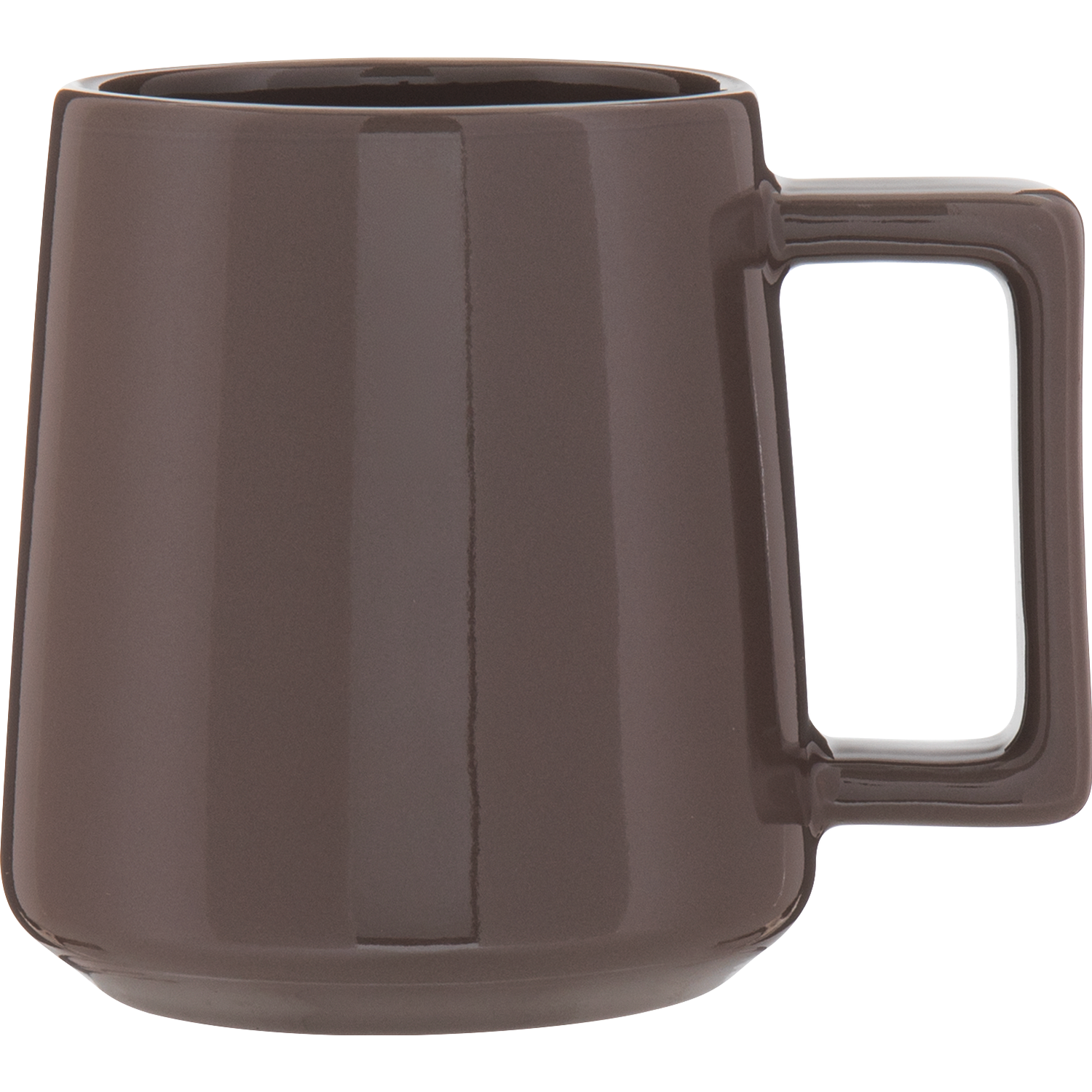 The Jude 17 oz ceramic mug offers a classic, polished look for everyday coffee, tea, or cocoa. Featuring a glossy colored exterior and a matching glossy interior, it brings a bright, unified style to any kitchen, office, or café setting. Perfect for morning routines or as a custom branded gift.