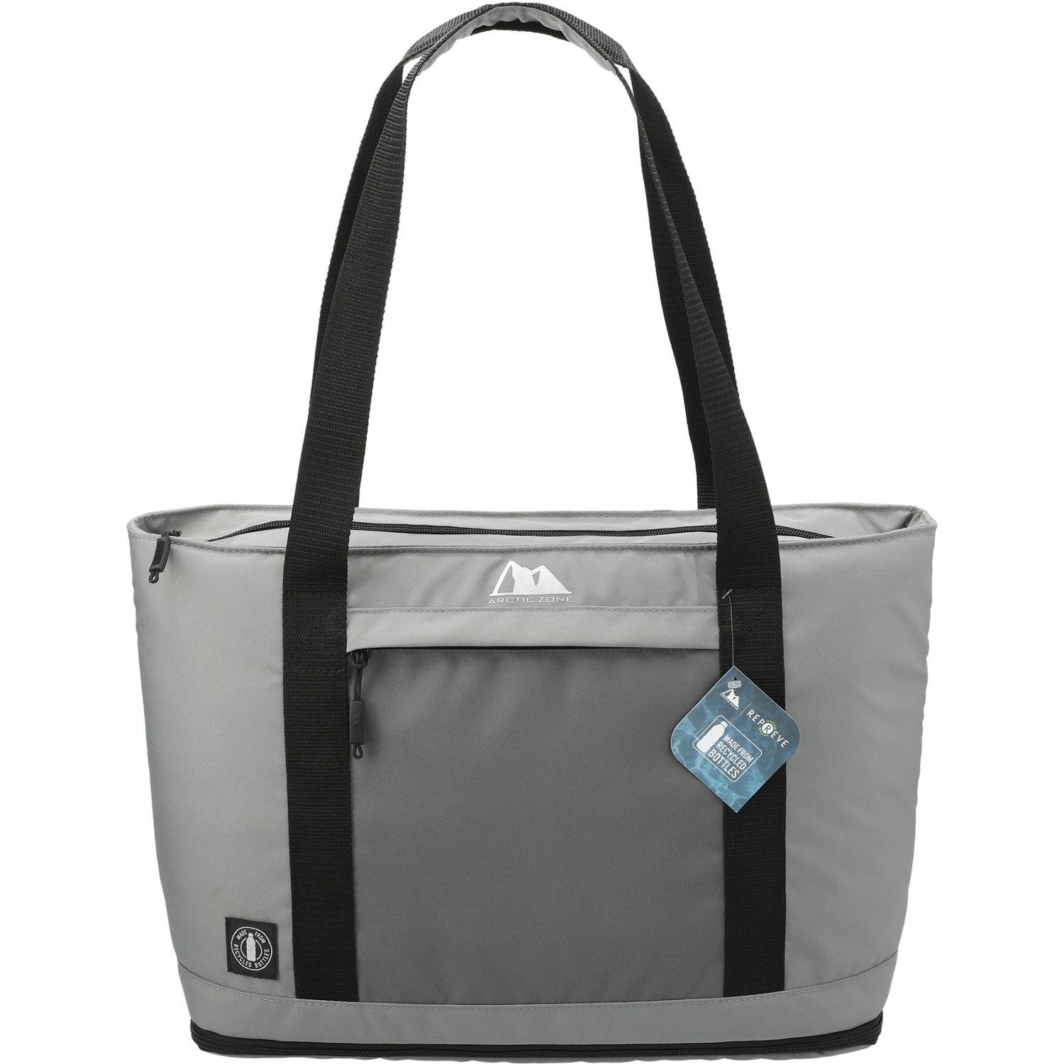 The Arctic Zone® Repreve® 25-50 Can Expandable RPET Cooler is a great tote-style cooler that expands to hold up to 50 cans! Perfect for all your needs and easy to carry with the dual straps. This features a zippered front pocket, perfect for utensils and other travel needs. The interior of the lunch bag features high-density thermal insulation and an Ultra Safe® leakproof lining, and the main body is made from REPREVE® RPET, the world’s leading recycled fiber, making it extra eco-friendly.