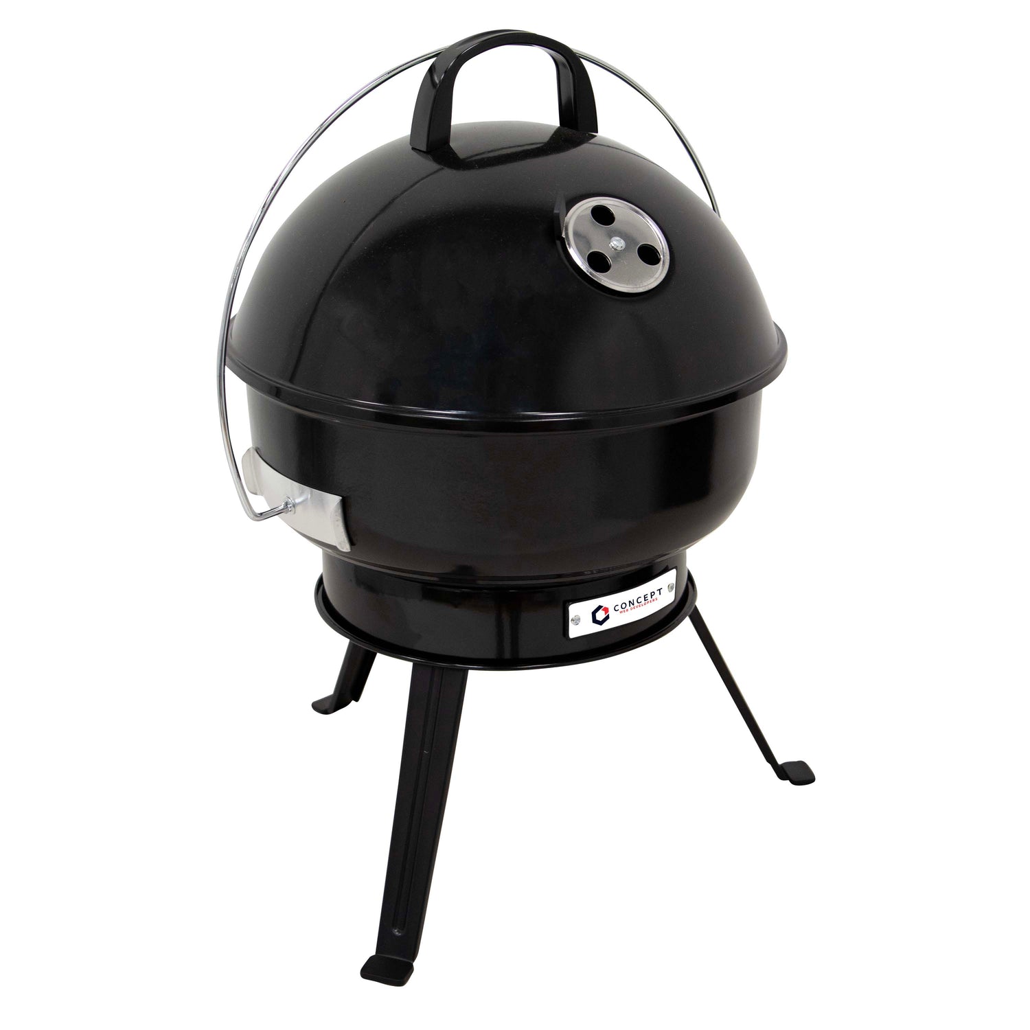 Portable kettle grill for camping or tailgaiting. Includes full color decal