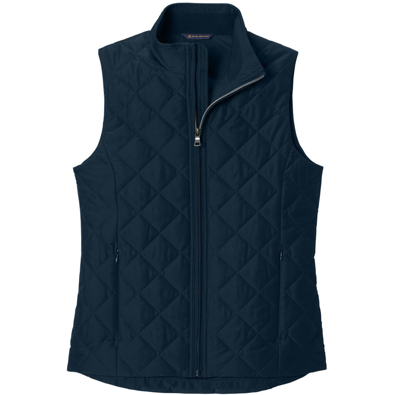 With a supple diamond-quilted shell designed to resist water and provide warmth, this insulated vest delivers unbeatable performance and unmistakable style. 100% polyester shell with a durable water-repellent (DWR) finish 2.9-ounce polyfill insulation Metallion coil front zipper with metal Brooks Brothers Golden Fleece logo zipper pull and piped kissing welt Zip-through, rib knit lined collar Princess seams Zippered hand pockets with teardrop pulls Decoration access pocket