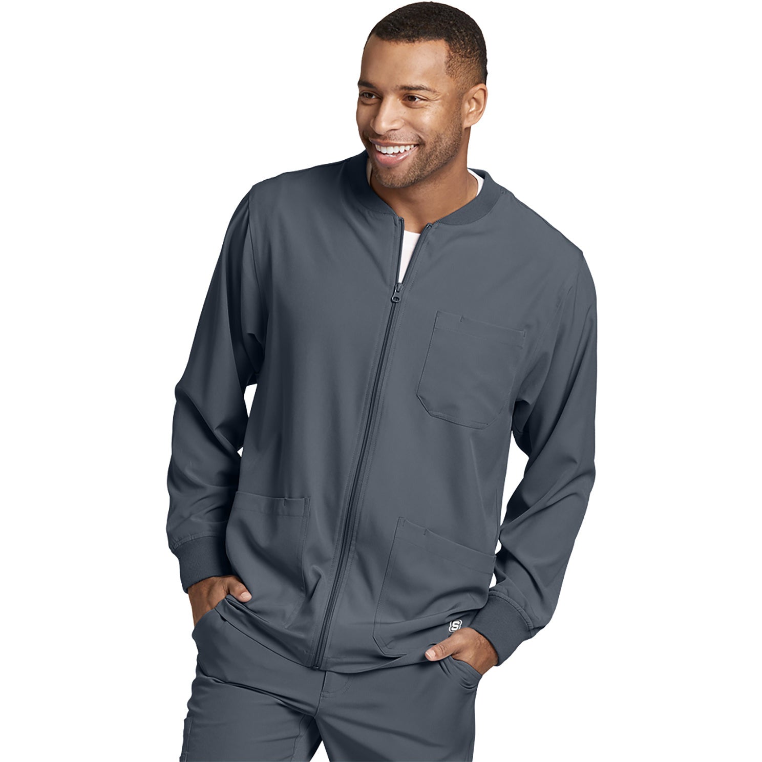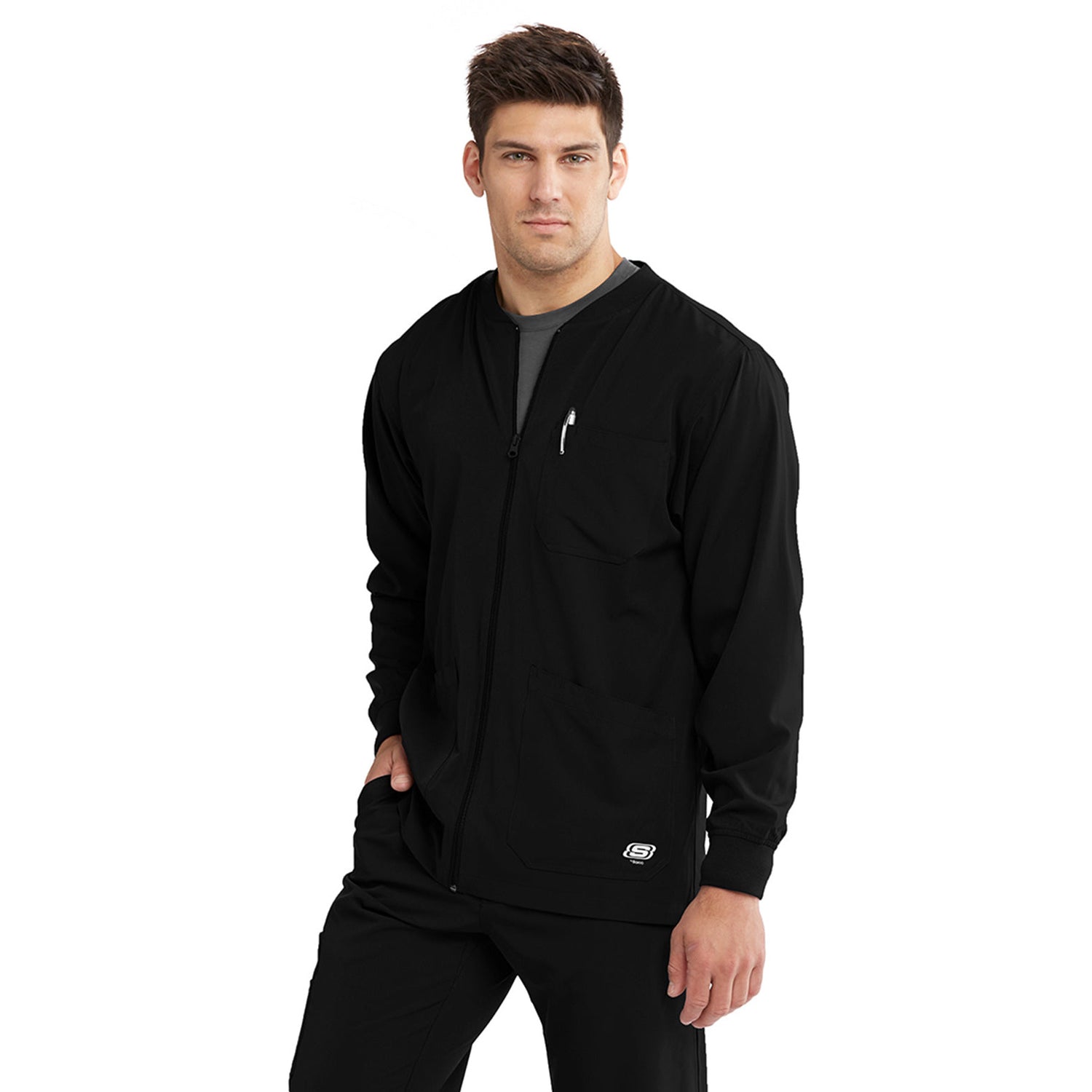 Skechers Men's Three-Pocket Zip-Up Structure Warm-Up Scrub Jacket