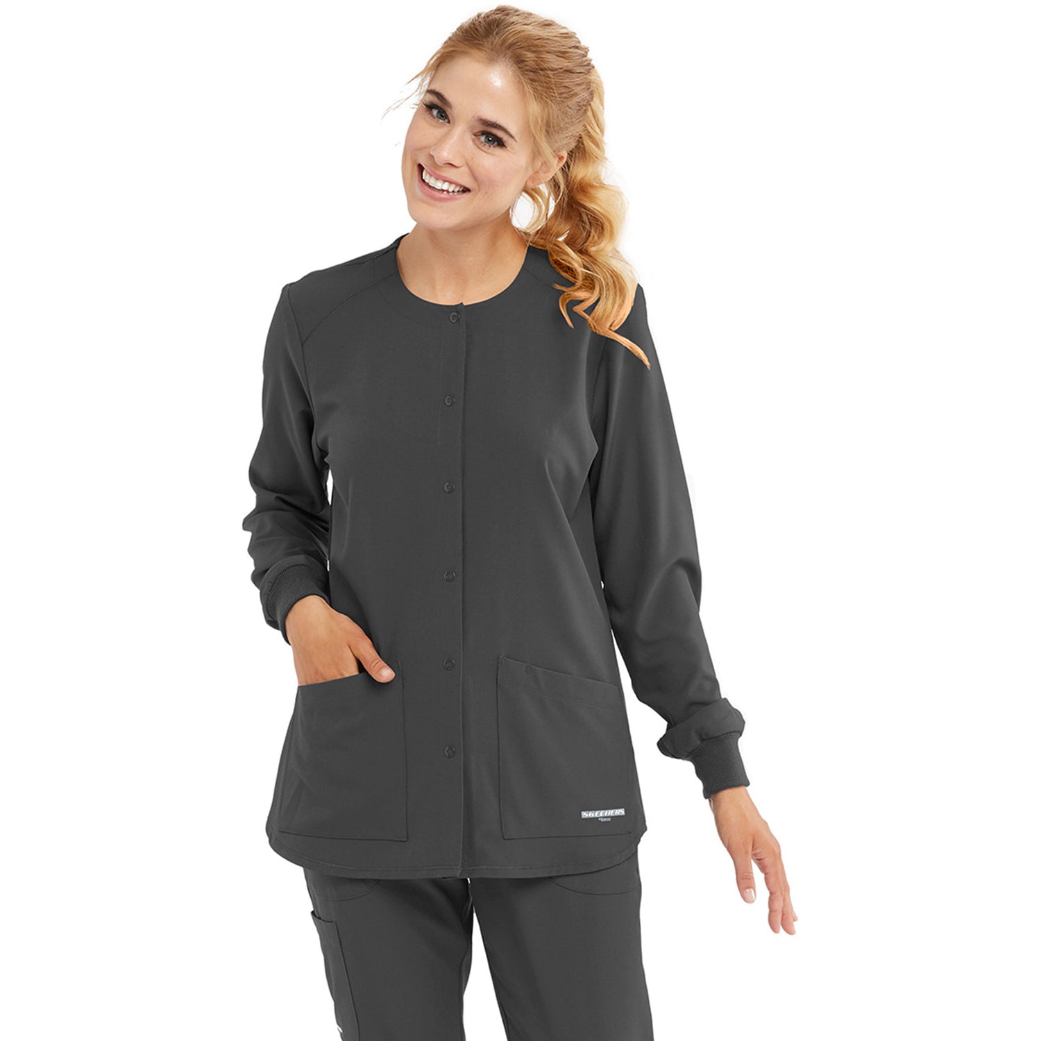 Skechers Women's Two-Pocket Snap-Front Stability Warm-Up Scrub Jacket