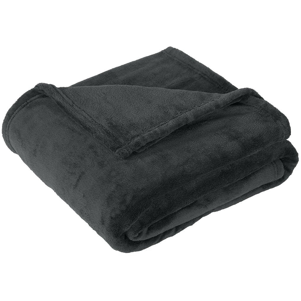 Our ultra plush banket, now in an ultra large size! This velvety soft blanket is a warm and welcome addition to your home. 15-ounce linear yard, 100% polyester Fully hemmed Dimensions: 60' x 85'