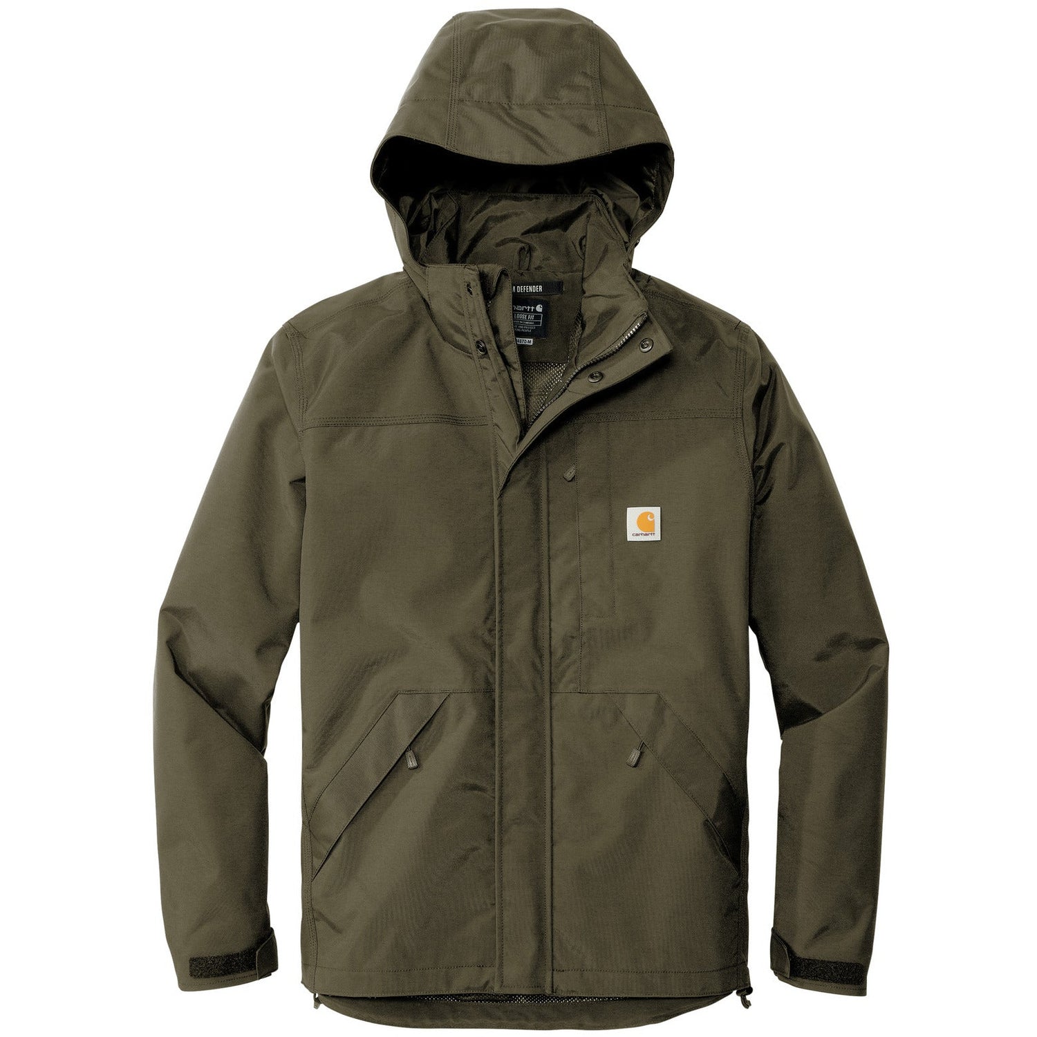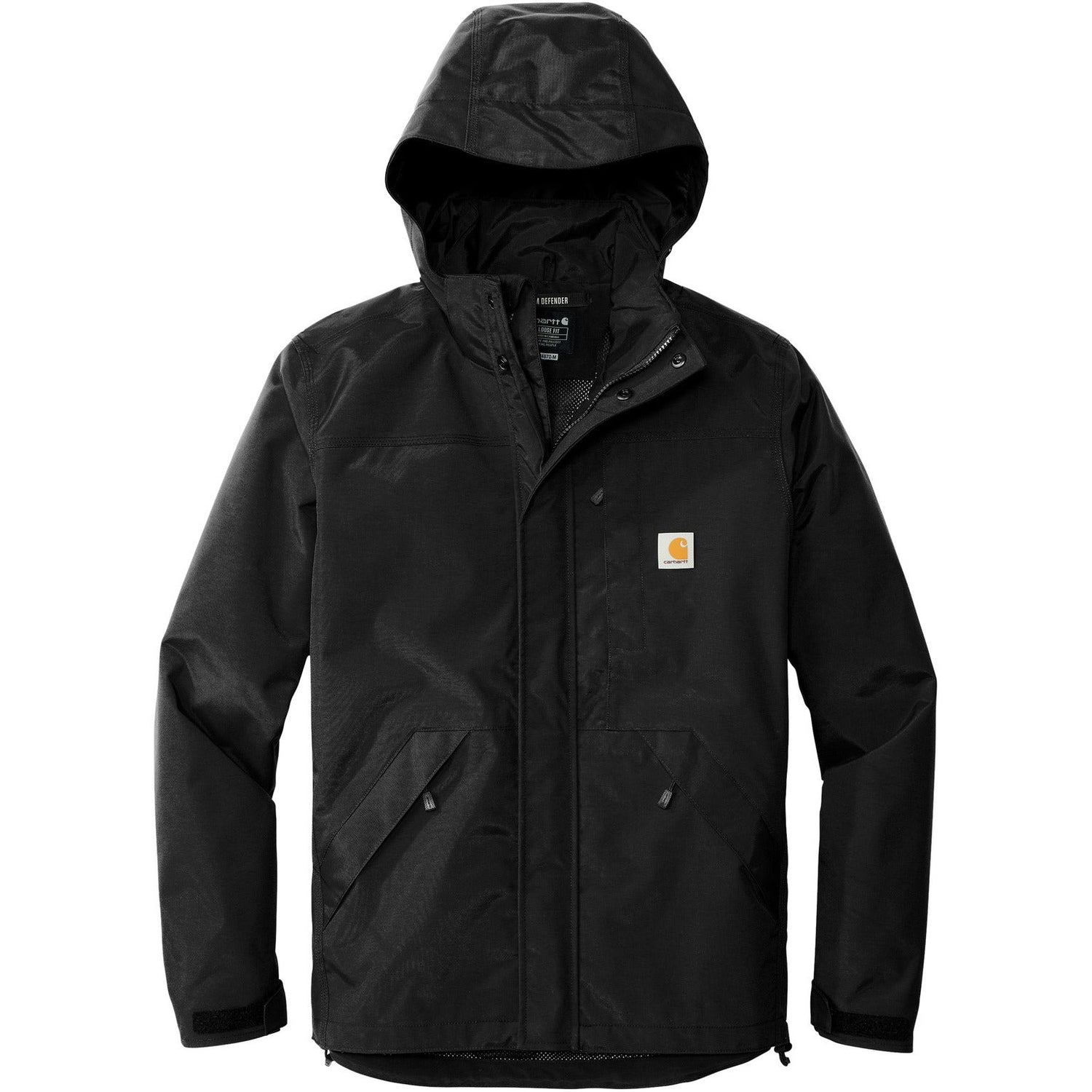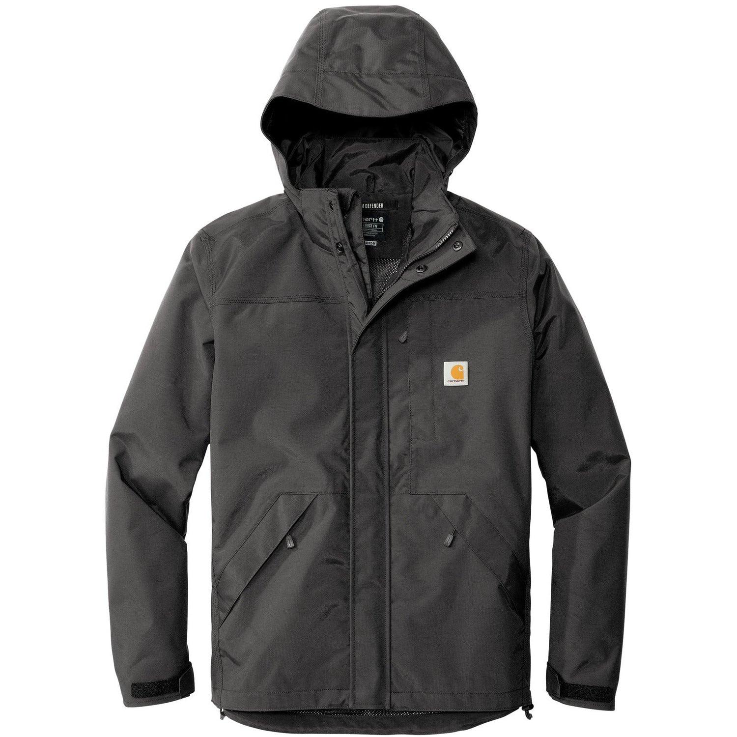 Our best-selling Shoreline Jacket has been updated. 7.3-ounce, 100% nylon oxford shell Storm Defender waterproof, breathable technology Wind Fighter technology tames wind 10K/10K waterproof/breathable protection rating Fully taped waterproof seams Polyester mesh lining Taffeta lining in sleeves and hood for easy on/off Adjustable, removable roll-away hood Full-zip front with inner and outer storm flaps Two interior pockets with hook and loop closures Left chest pocket with secure waterproof zipper and storm flap Two lower front pockets with zippered closures and storm flaps Adjustable cuffs with hook and loop closures and inner sleeve storm cuffs Adjustable drop tail hem Carhartt-strong, triple-stitched main seams Carhartt label sewn on chest pocket Loose fit