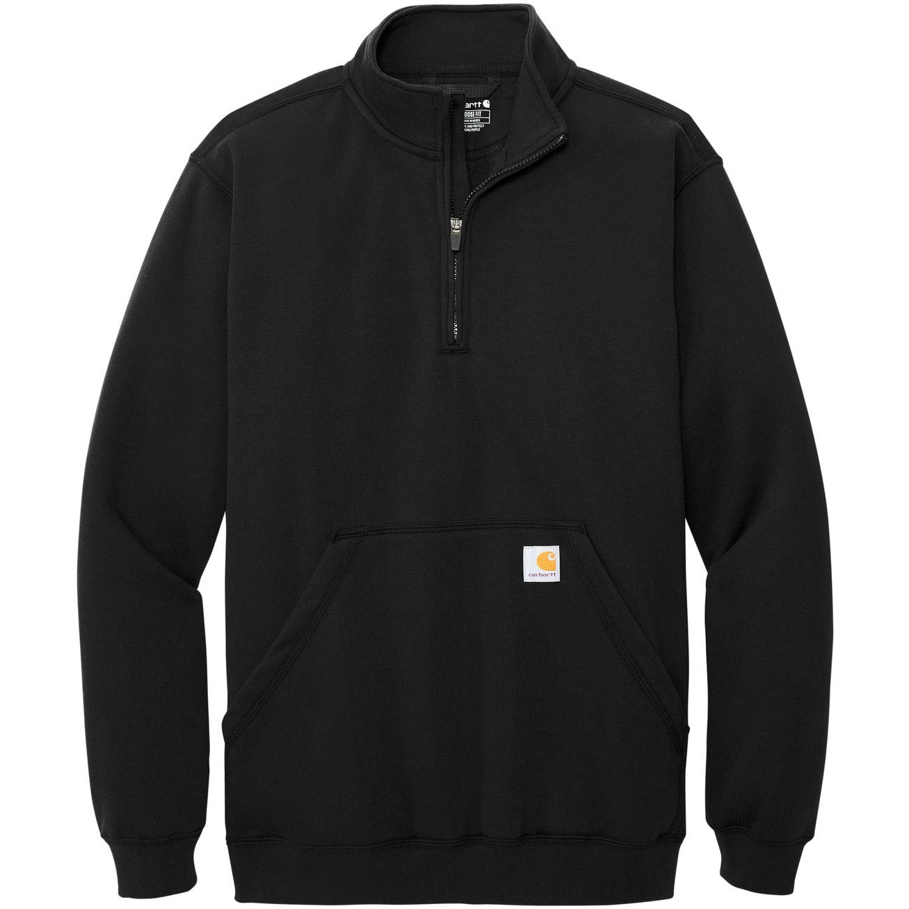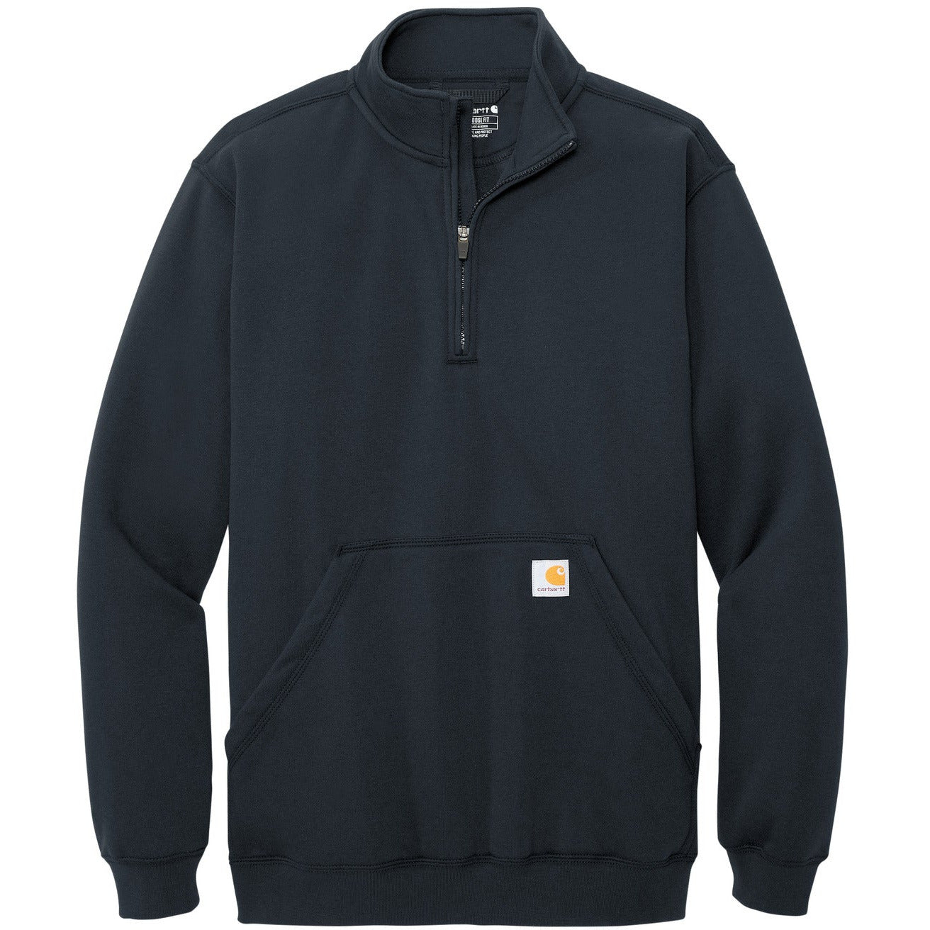 From job sites to weekend errands, this layerable 1/4-zip offers easy-wearing warmth and undeniable Carhartt versatility. 10.5-ounce, 50/50 cotton/poly blend or 59/41 cotton/poly blend (Black, Carbon Heather, Carhartt Brown, New Navy)* 70/30 cotton/poly blend (Heather Grey) Mock neck collar 1/4-zipper with storm flap Front hand warmer pocket Stretchable, spandex-reinforced, rib knit cuffs and waistband Carhartt-strong, triple-stitched main seams for added durability Carhartt label sewn on left handwarmer pocket Loose fit *Please note: Select colors in Carhartt fleece are currently transitioning from a 50/50 cotton/poly blend to a 59/41 cotton/poly blend. Weight and fabric properties remain the same. Your order may contain a combination of both fabrics.