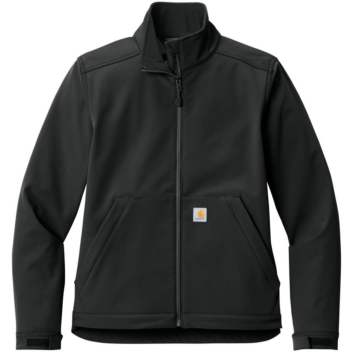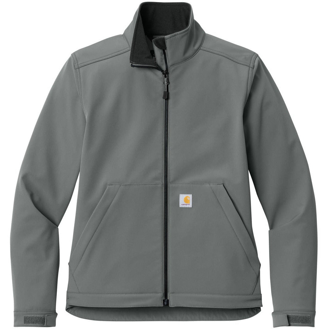 The work doesn't stop for rain showers. These durable soft shells are equipped to stand up to wind and rain so you can get the job done. 10-ounce, 87/13 nylon/elastane 100% polyester lining Rain Defender durable water repellent (DWR) Wind Fighter technology tames wind Rugged Flex stretch technology for ease of movement Mock neck collar Reverse coil center front zipper with chin protector Interior pocket with hook and loop closure Two lower front zippered pockets Adjustable cuffs with hook and loop closures Adjustable drop tail hem for added coverage Carhartt label sewn on left pocket Relaxed fit