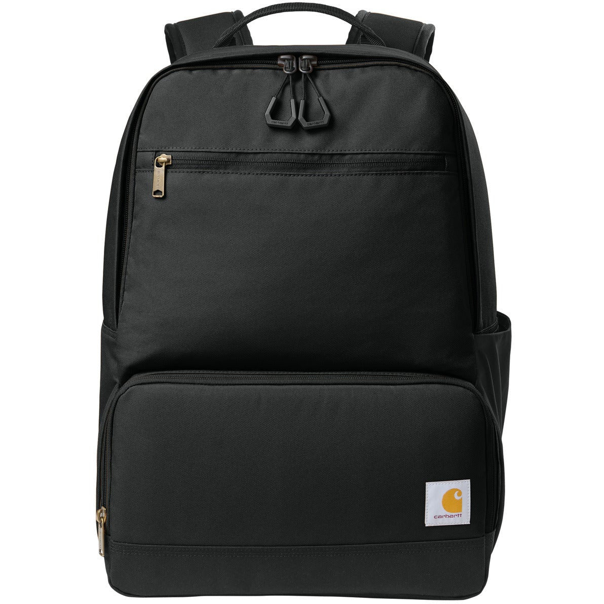 600D polyester Rain Defender durable water repellent (DWR) Adjustable shoulder straps with sternum buckle Cooler collapses to create extra space in main compartment Cooler compartment can be stowed away when not in use Durable lined cooler compartment for easy cleaning Separate 17' padded laptop sleeve on back panel Tricot-lined zippered pocket inside main compartment Two interior mesh slip-in pockets with pen sleeves Exterior zippered pocket Side stretch-mesh pocket Glove-friendly zipper pulls Carhartt label sewn on front Laptop dimensions: 16.5'h x 11.5'w; fits most 17' laptops Dimensions: 19'h x 13.5'w x 8.5'd Capacity: 1,537.5 cu. in./25 L Weight: 1 lb. 6 oz./612 g Note: Bags not intended for use by children 12 and under.