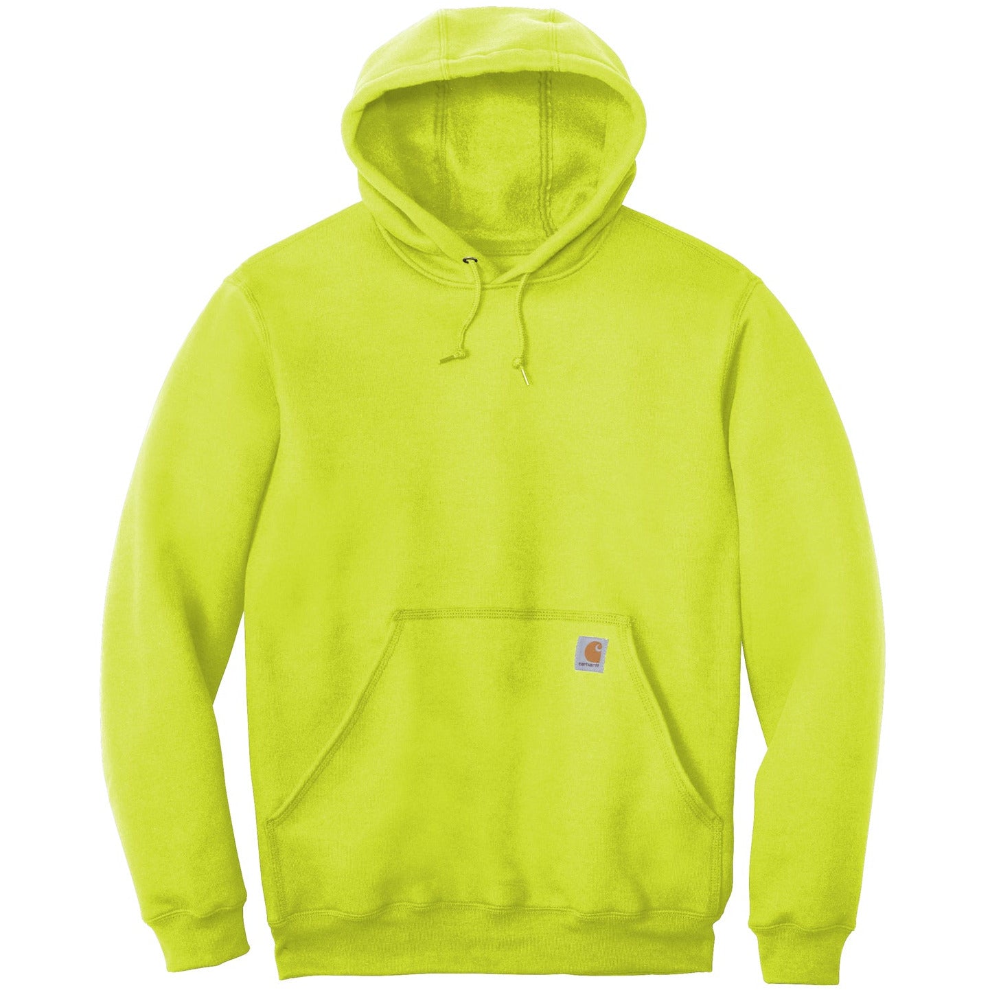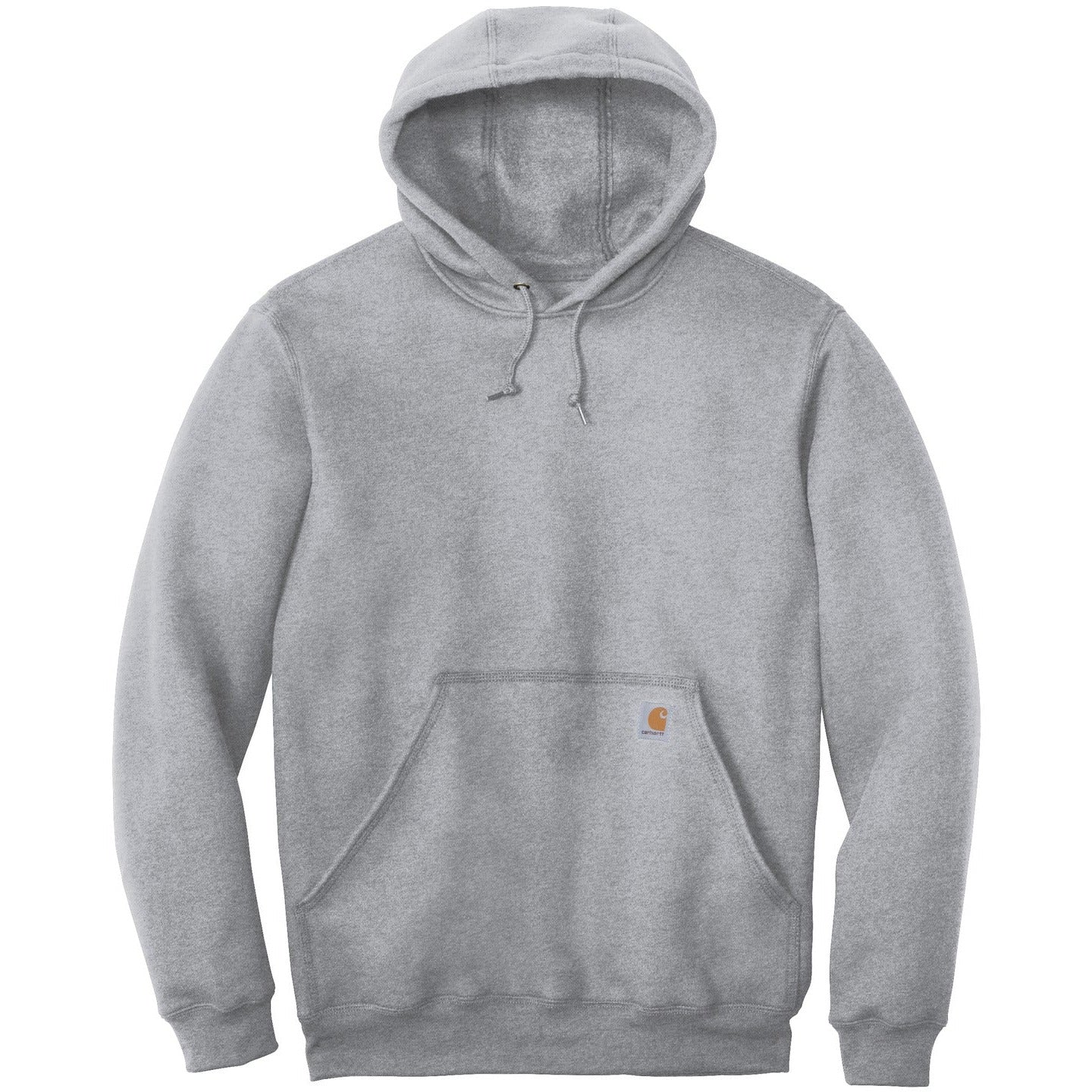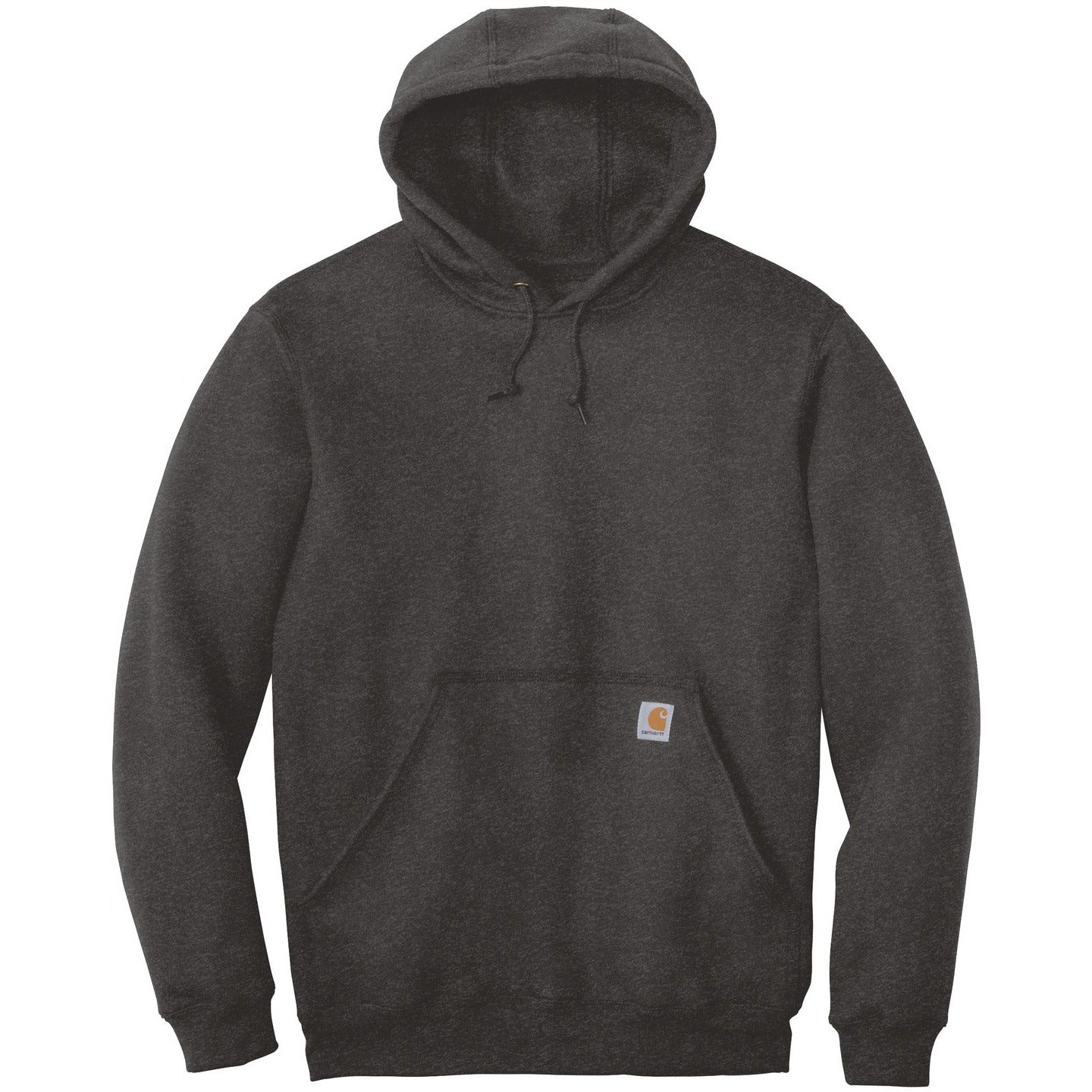 Sometimes Mother Nature can't make up her mind. This sweatshirt works perfectly as a layer or by itself, allowing you to adapt with the weather. 10.5-ounce, 50/50 cotton/poly blend or 59/41 cotton/poly blend (Black, Carbon Heather, Moss, New Navy)* 50/50 cotton/poly blend (Brite Lime, Brite Orange) 70/30 cotton/poly blend (Heather Grey) Attached three-piece hood with drawcord closure Front hand warmer pocket Stretchable, spandex-reinforced, rib knit cuffs and waistband Carhartt-strong, triple-stitched main seams Carhartt label sewn on hand warmer pocket Loose fit *Please note: Select colors in Carhartt fleece are currently transitioning from a 50/50 cotton/poly blend to a 59/41 cotton/poly blend. Weight and fabric properties remain the same. Your order may contain a combination of both fabrics.