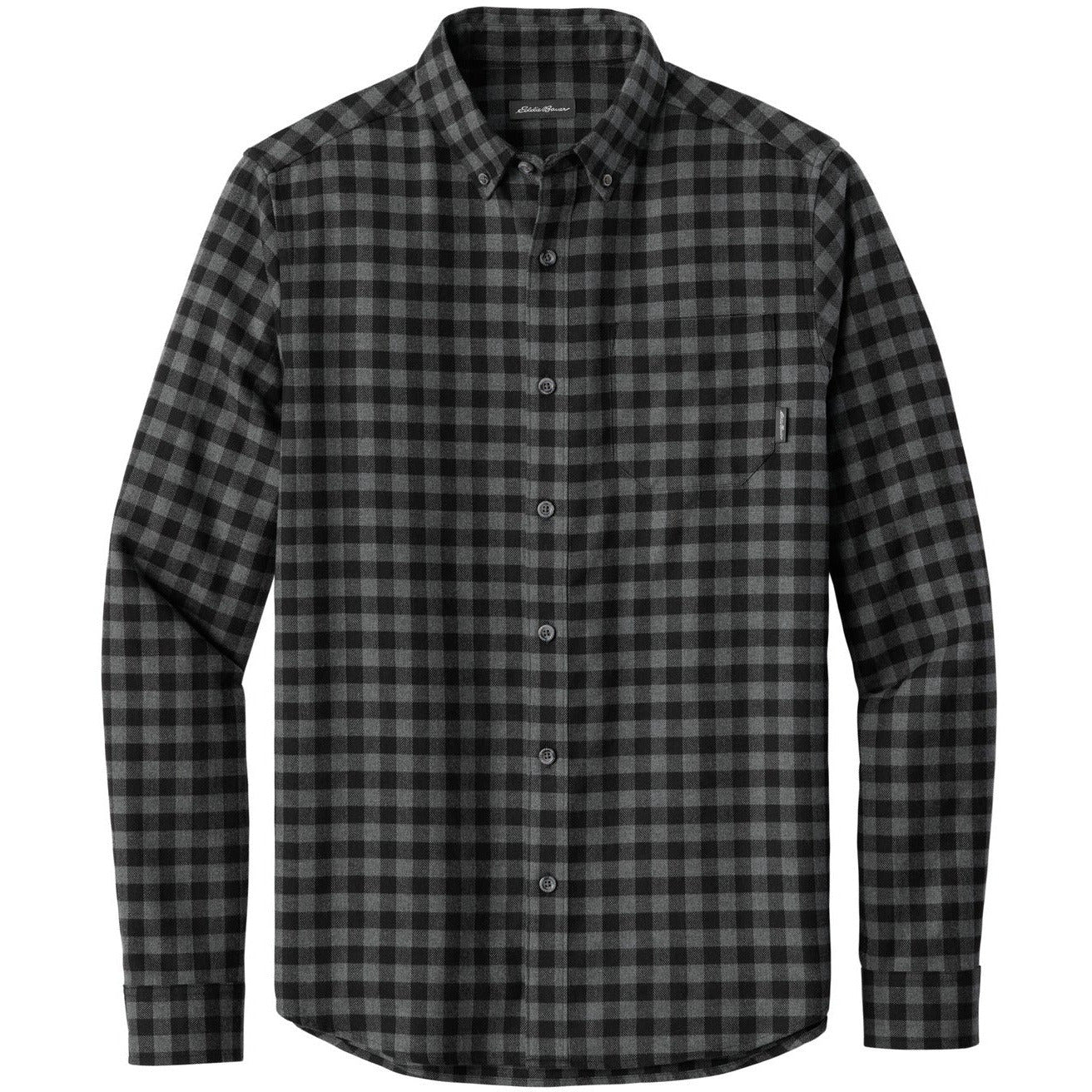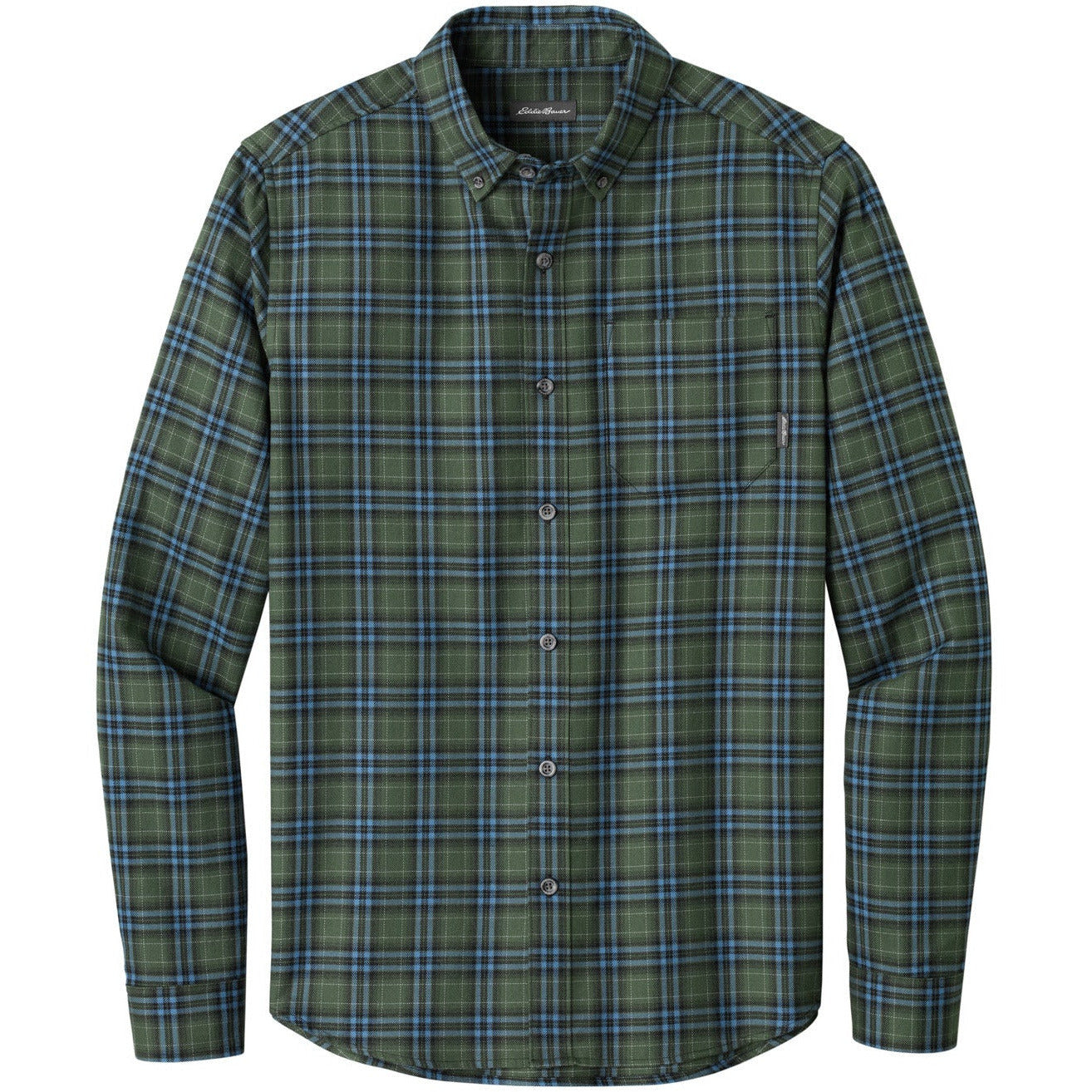 This iconic shirt embodies the heritage of adventure whether you're at home or in the wilderness. Brushed on both sides for unmatched softness, this shirt features a button-down collar, faux horn signature logo buttons, a mitered left chest pocket and mitered cuffs. A woven Eddie Bauer logo is at left chest pocket hem. Made of 5.9-ounce, 100% cotton herringbone flannel.