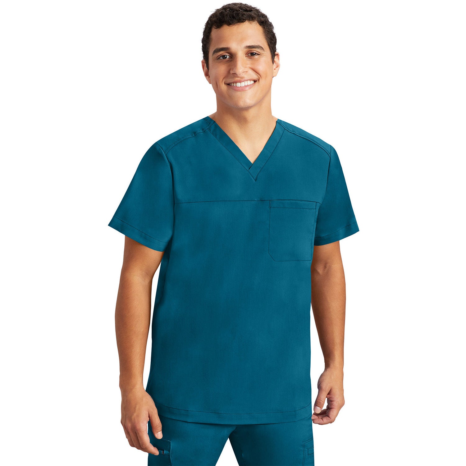 The new Purple Label men's collection is packed with all the features and styling every guy wants to perform at their peak. The "Justin" scrub top features a V-neck, one chest pocket, and sleeve pen pocket, and back yoke detail. Modern fit. Body Length: 29.5"