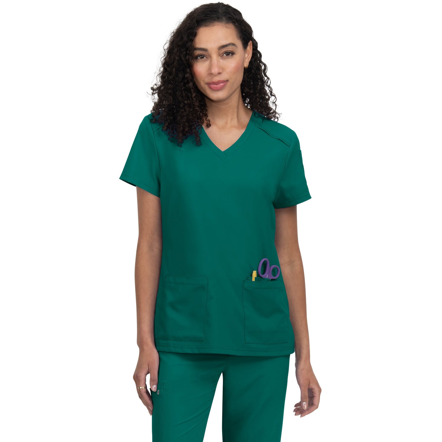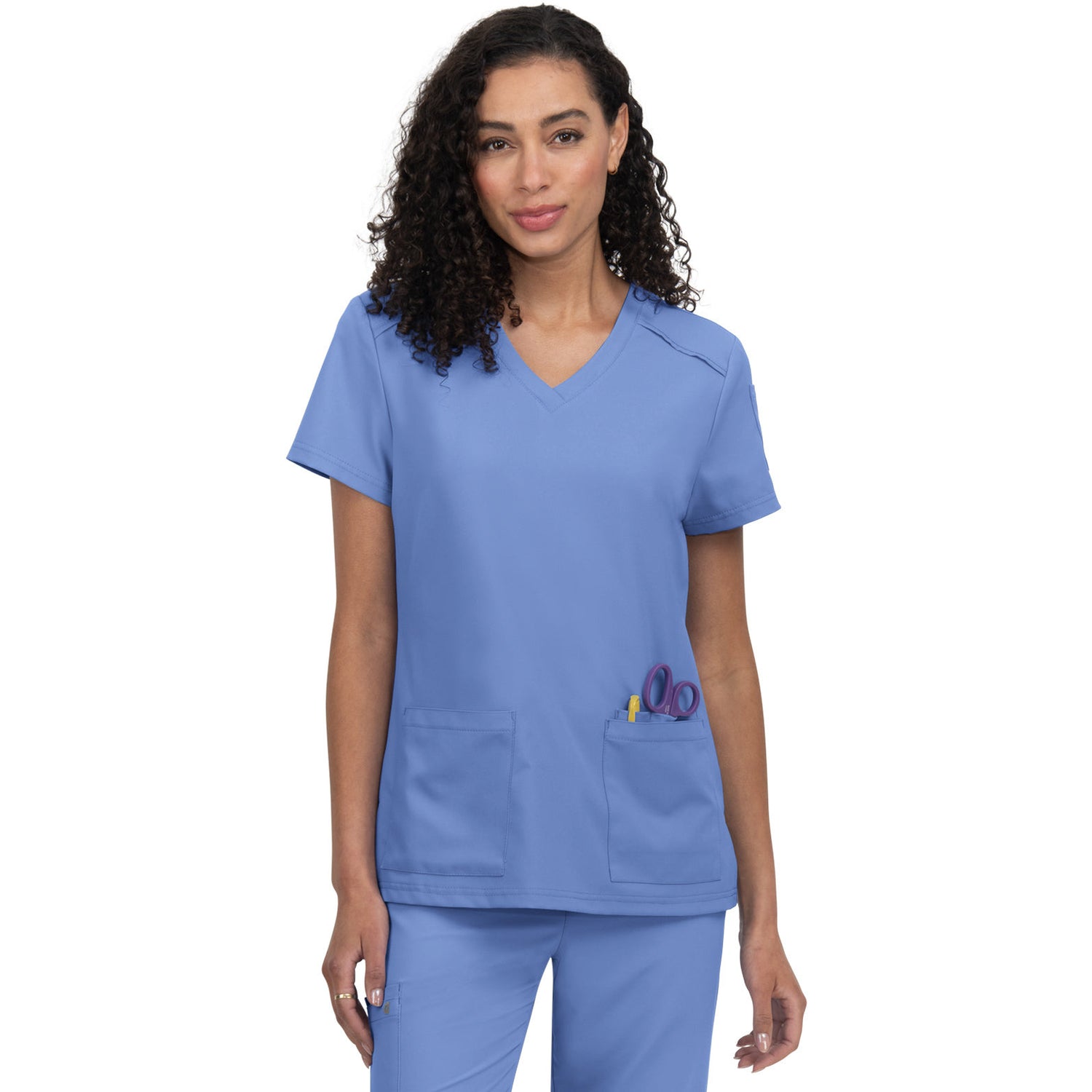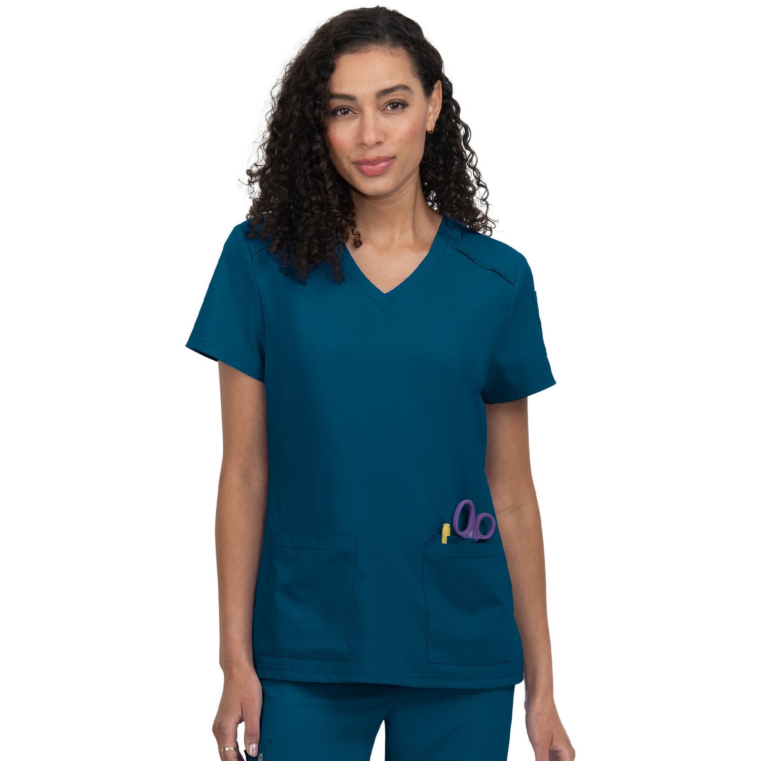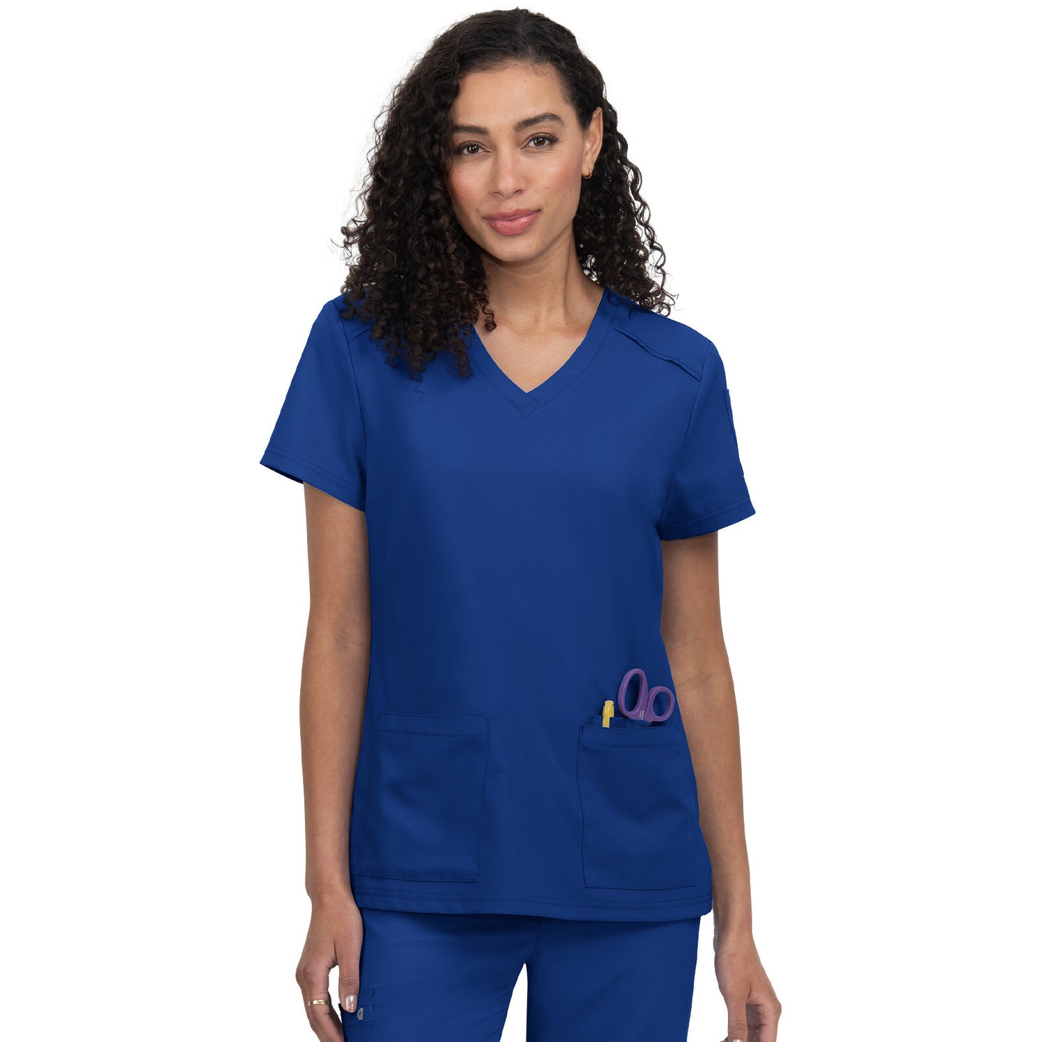 The Cardi scrub top redefines your workday wardrobe with its perfect blend of fashion and functionality, all at an unbeatable price. The Modern Classic fit offers a flattering silhouette that looks polished whether you prefer to tuck it in or wear it loose. Stay organized with two front pockets, three pen slots, and a convenient sleeve pocket. The thoughtful design also includes an ID badge loop and side slits for added comfort and movement. With a length of 27" in size Small, the Cardi top ensures a flattering fit that will keep you looking and feeling your best throughout your shift. Upgrade your scrub game with Cureology and experience the difference!