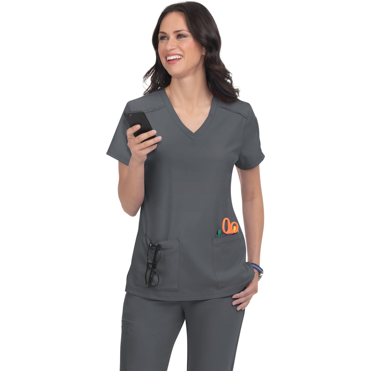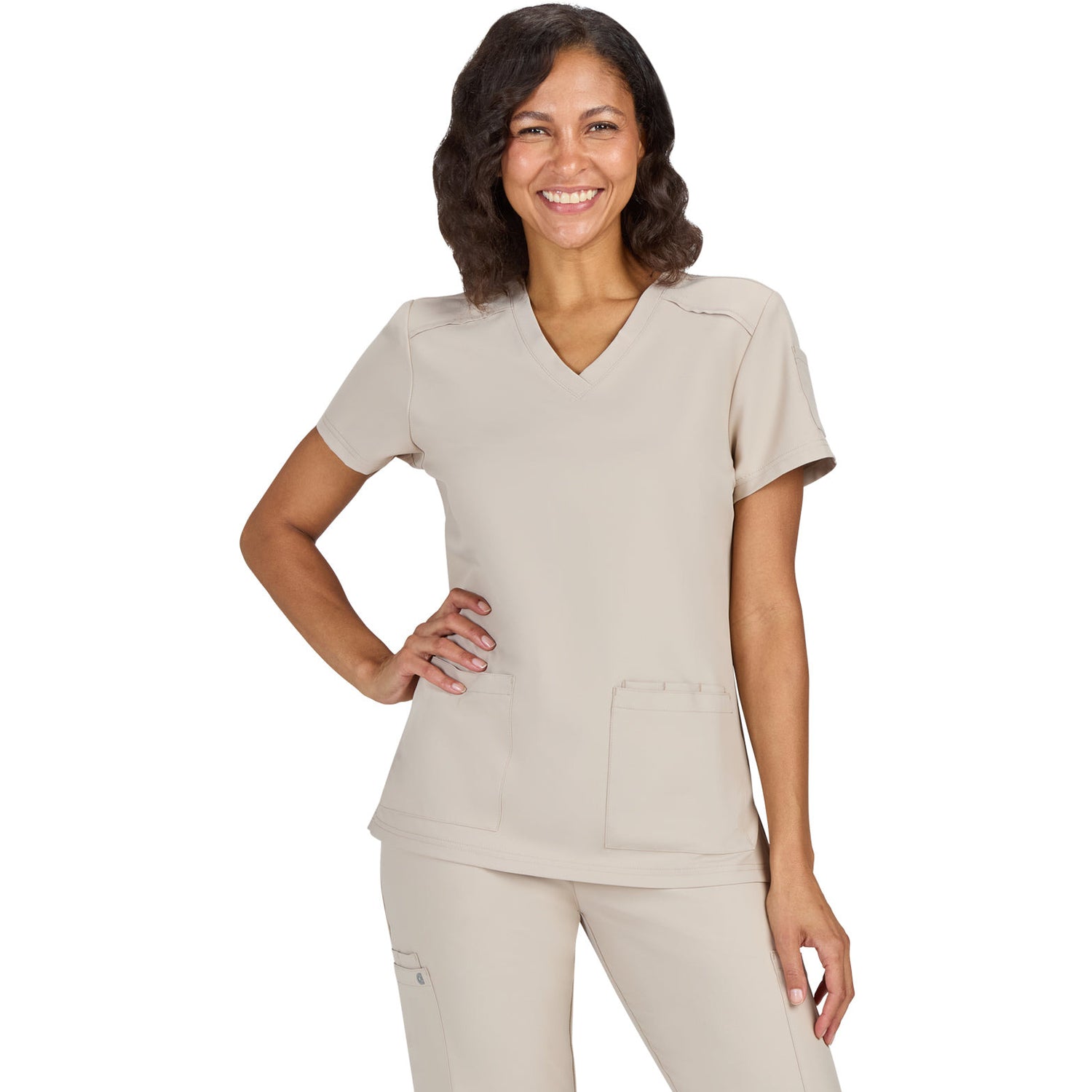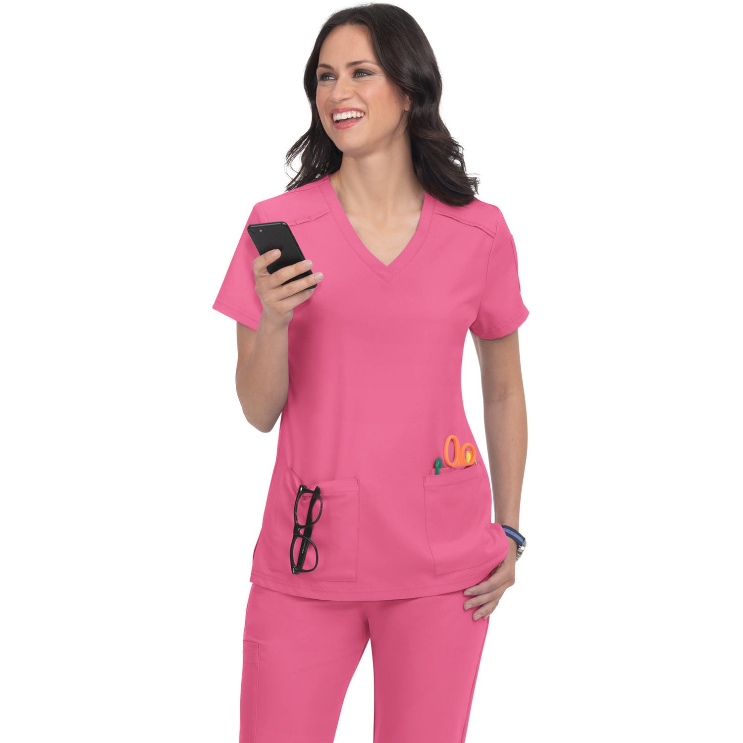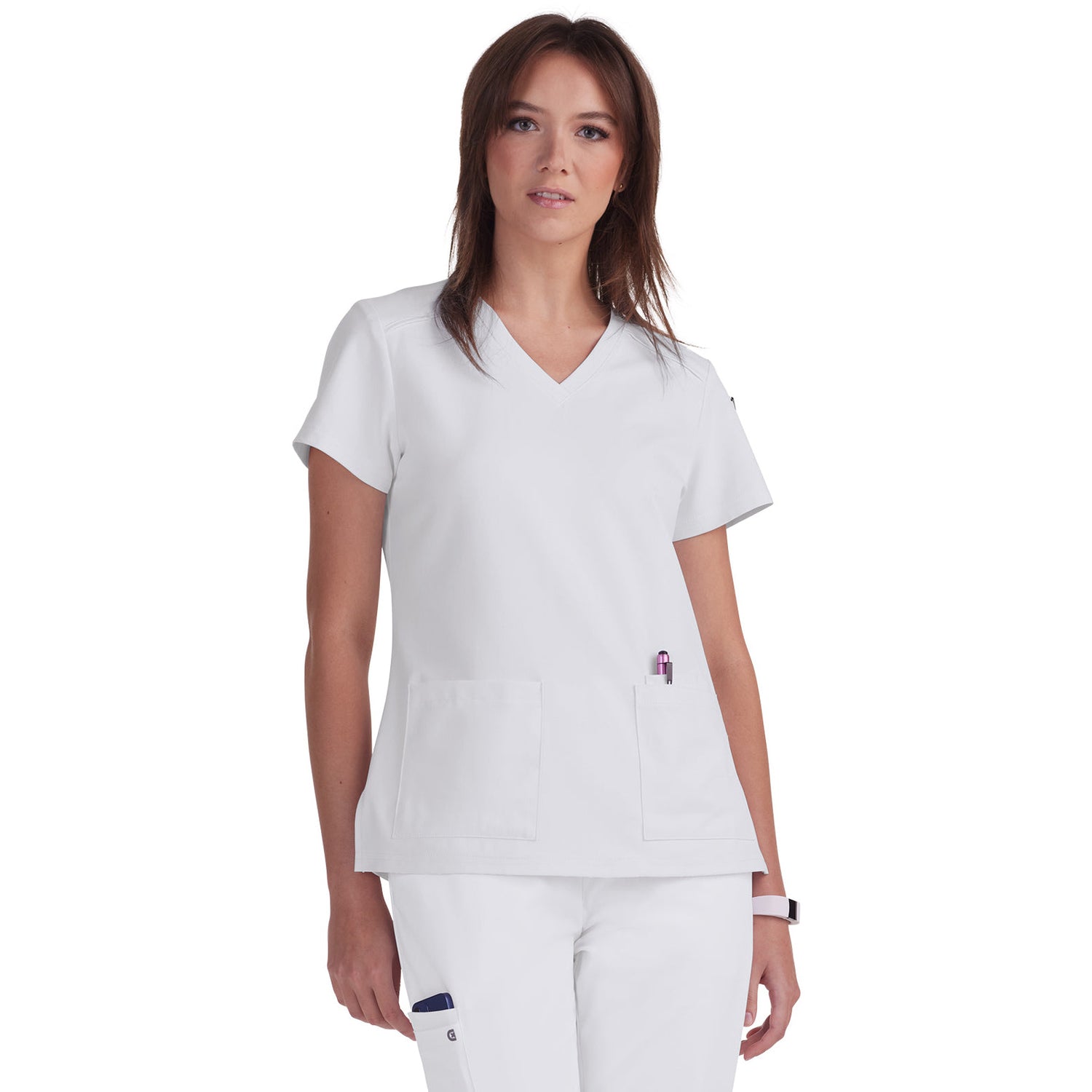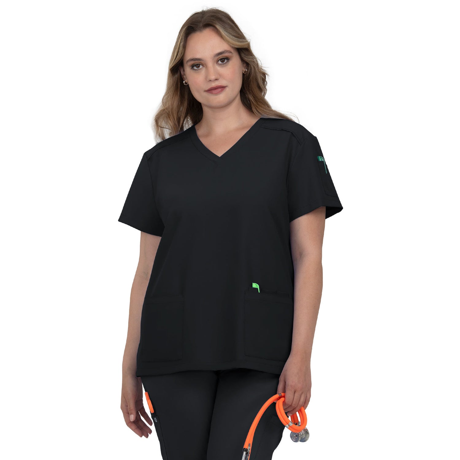 The Cardi scrub top redefines your workday wardrobe with its perfect blend of fashion and functionality, all at an unbeatable price. The Modern Classic fit offers a flattering silhouette that looks polished whether you prefer to tuck it in or wear it loose. Stay organized with two front pockets, three pen slots, and a convenient sleeve pocket. The thoughtful design also includes an ID badge loop and side slits for added comfort and movement. With a length of 27" in size Small, the Cardi top ensures a flattering fit that will keep you looking and feeling your best throughout your shift. Upgrade your scrub game with Cureology and experience the difference!