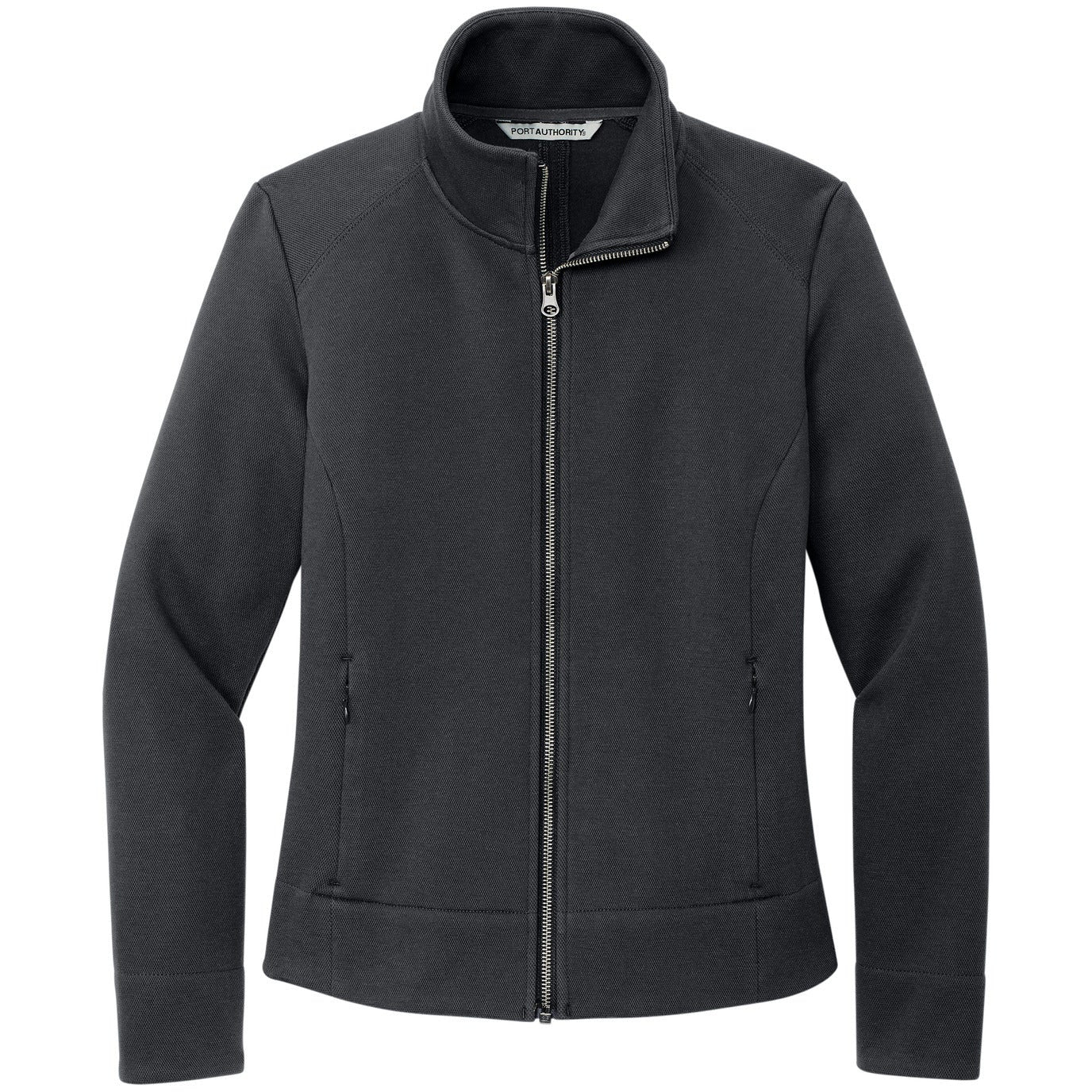 With a classic pique look, this brushed-back fleece has professional style thanks to its sophisticated metal zippers. 9.7-ounce, 58/42 cotton/polyester fleece with pique face and brushed back Metal center front zipper Invisible zippered hand pockets Deeper cuffs and hem