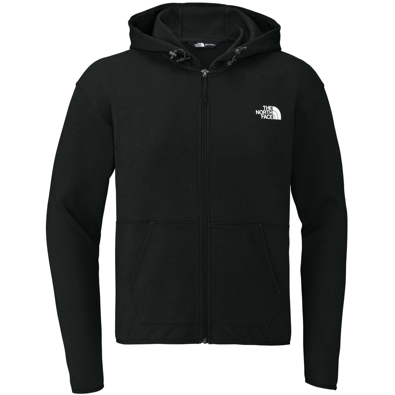Designed with double-knit fabric with stretch, this warm hoodie is ideal for low-key adventures and laid-back weekends. 305 g/m2 72/28 cotton/polyester double jersey knit Attached, three-piece, lay-flat hood with drawcord and cord locks for adjustability Drop shoulders Full-length center front zipper with pull Front hand pockets with elastic binding Elastic binding at cuffs and hem The North Face logo heat transfer on left chest and right back shoulder BENEFITS BREATHABLE: Blended fabrication that helps regulate body temperature. STRETCH: This product contains material with stretch that allows for greater range of mobility