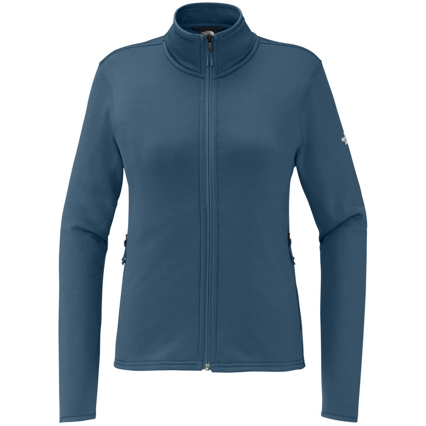 Designed with a gridded texture and stretch, this warm, versatile fleece aims to become her favorite. 216 g/m2 95/5 recycled polyester/elastane Stand collar Set-in sleeves with forward-set shoulder seams Exposed reverse coil center front zipper with extended dyed-to-match zipper pull Reinforced binding on collar, cuffs and hem Secure-zip hand pockets Contrast heat transfer The North Face logo on left sleeve and right back shoulder