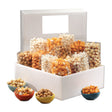 Tucked inside this unassuming white box is a flavor explosion! 12 bags of gourmet popcorn—3 each of 4 varieties—are packed together in a gift perfect for an office to share. On the outside of the box, a full-color label with your custom message is featured so that every recipient will know who to thank for the delicious experience. Serves 12-24.
