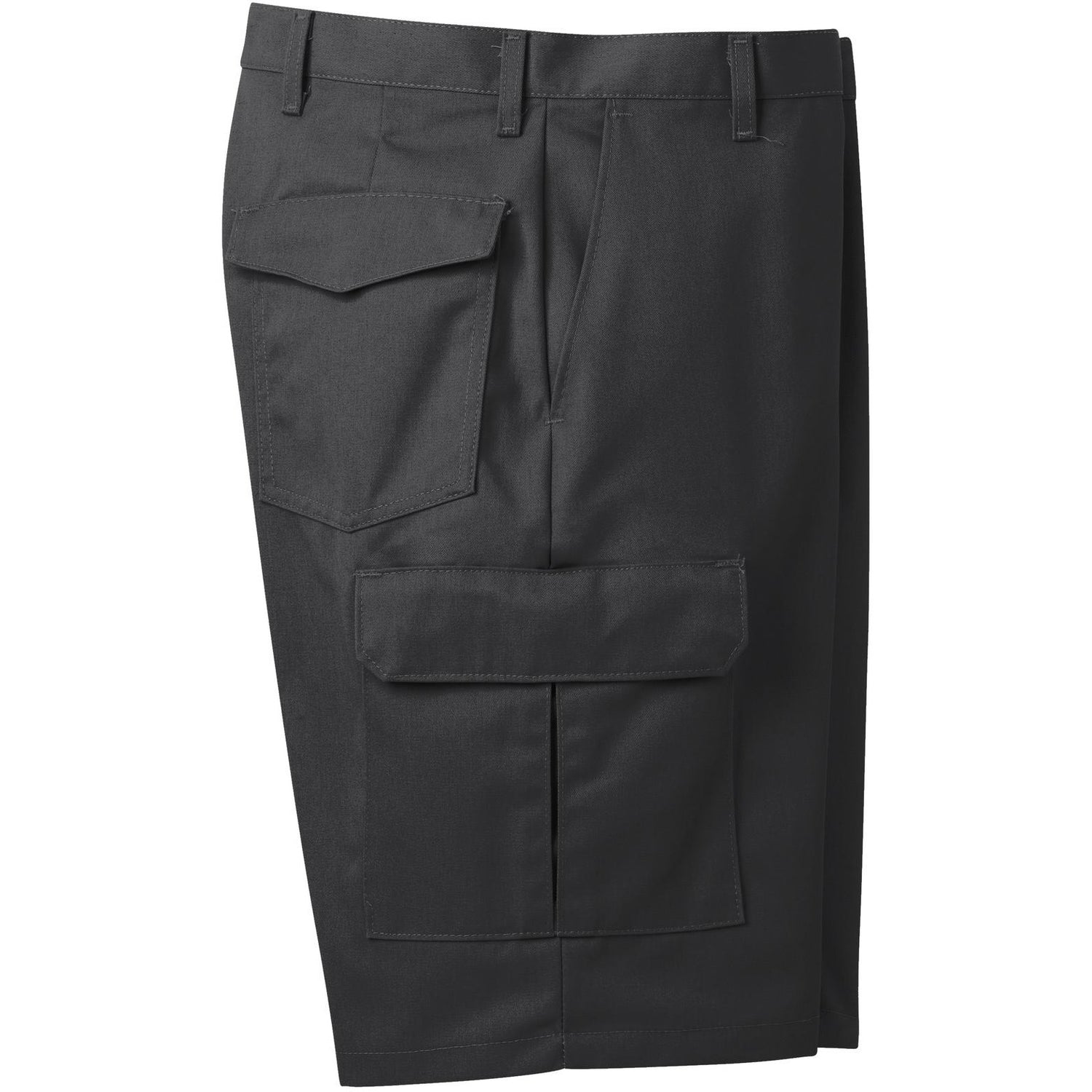 Built for the person who carries a lot of stuff, our IL50-strength Cargo Short has snap cargo pockets to pack what you need to get work done. Tested through 50 industrial launderer washes. | 7.5-ounce, 65/35 poly/cotton twill with Touchtex PRO technology which provides breathable comfort lasting colors and stain resistance with an even softer feel TruBlack fabric resists fading wash after wash Requires minimal ironing thanks to a wrinkle-resistant finish Heavy-duty brass ratcheting zipper with button closure Two front pockets 12-inch inseam Two back patch pockets with spade pocket flaps and snap closure Two patch leg pockets with inverted center pleats, one-piece pocket flaps with mitered corners and two snap closures Industrial laundry friendly