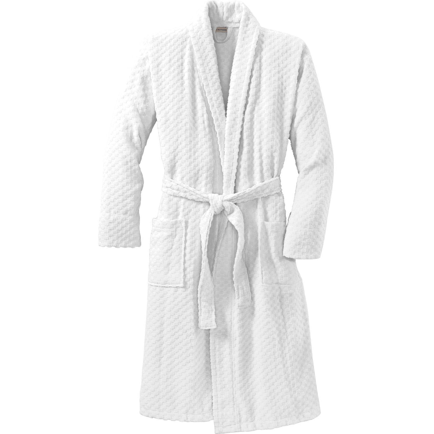 A welcome indulgence, this cotton robe with its checkered texture and exceptional absorbency is perfect for the pool, spa or resort. | 9.2-ounce, 100% cotton Side seamed with 1/4 single-needle topstitch Two patch pockets at hips Self-fabric belt and loops for easy adjustment Measures:32'-40' chest, 47' length (S/M); 40'-54' chest, 50' length (L/XL)
