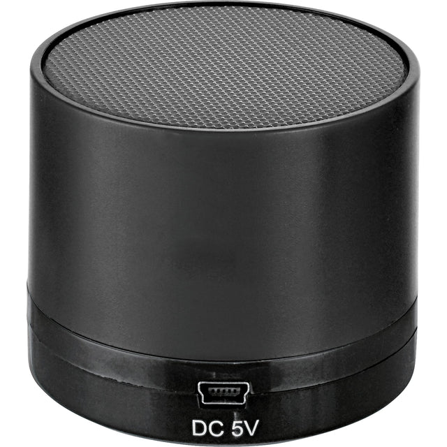 The Cylinder Bluetooth® Speaker is a lightweight speaker with an internal rechargeable battery that provides up to 1.5 hours of nonstop music. 3 Watt Speaker Output. Built in Microphone for conference calls. Includes Micro USB Charging Cable. The Bluetooth working range is 10 meters (33 feet). Charge time: one hour.