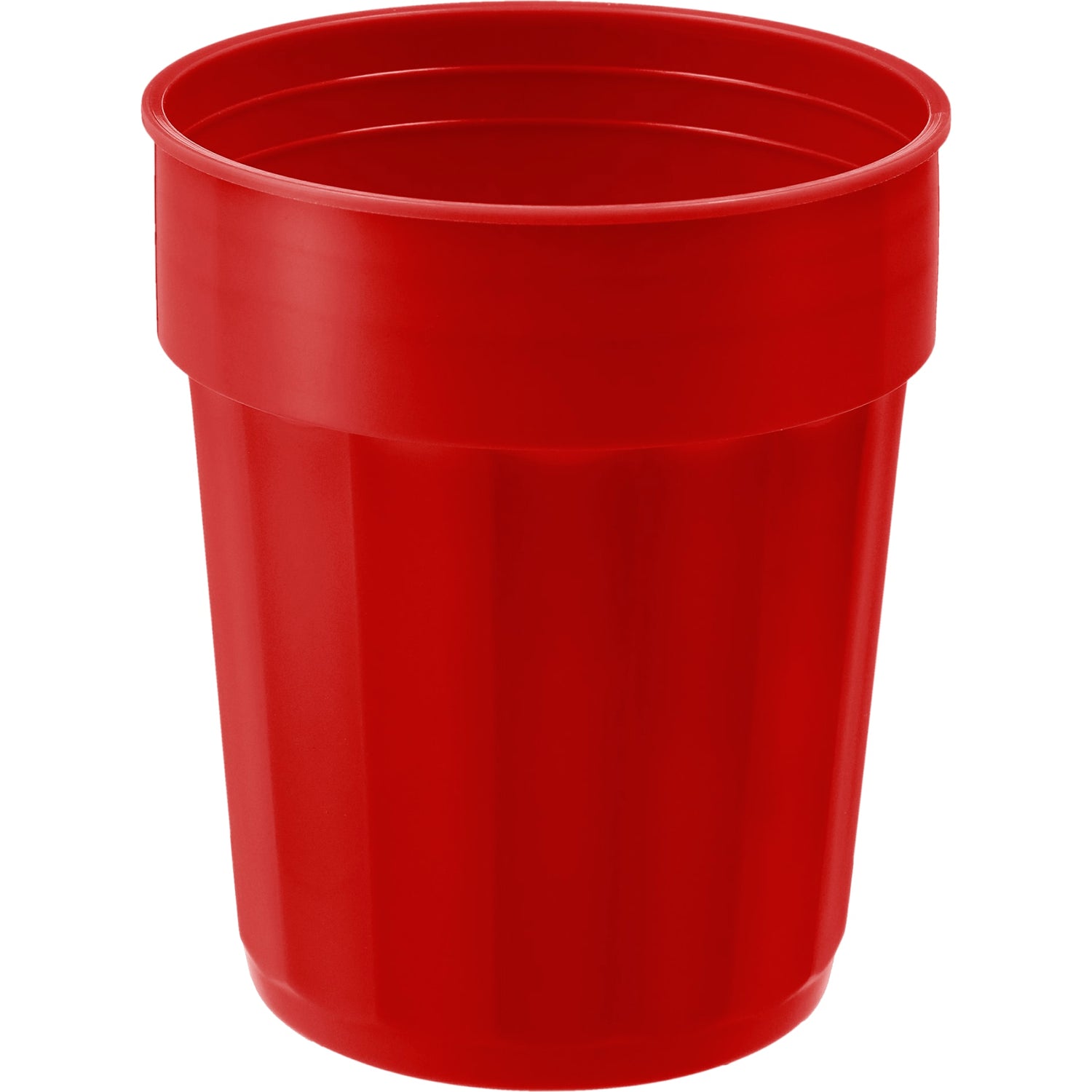 The Fluted Stadium Cup is a reusable cup that holds 16 ounces of your favorite beverage. It's fluted sides and stackable design save space on the giveaway table and in the kitchen. This cup is a great souvenir that will get used over and over and loved for years to come. The 16oz Fluted Stadium Cup is BPA-free. Hand wash only.