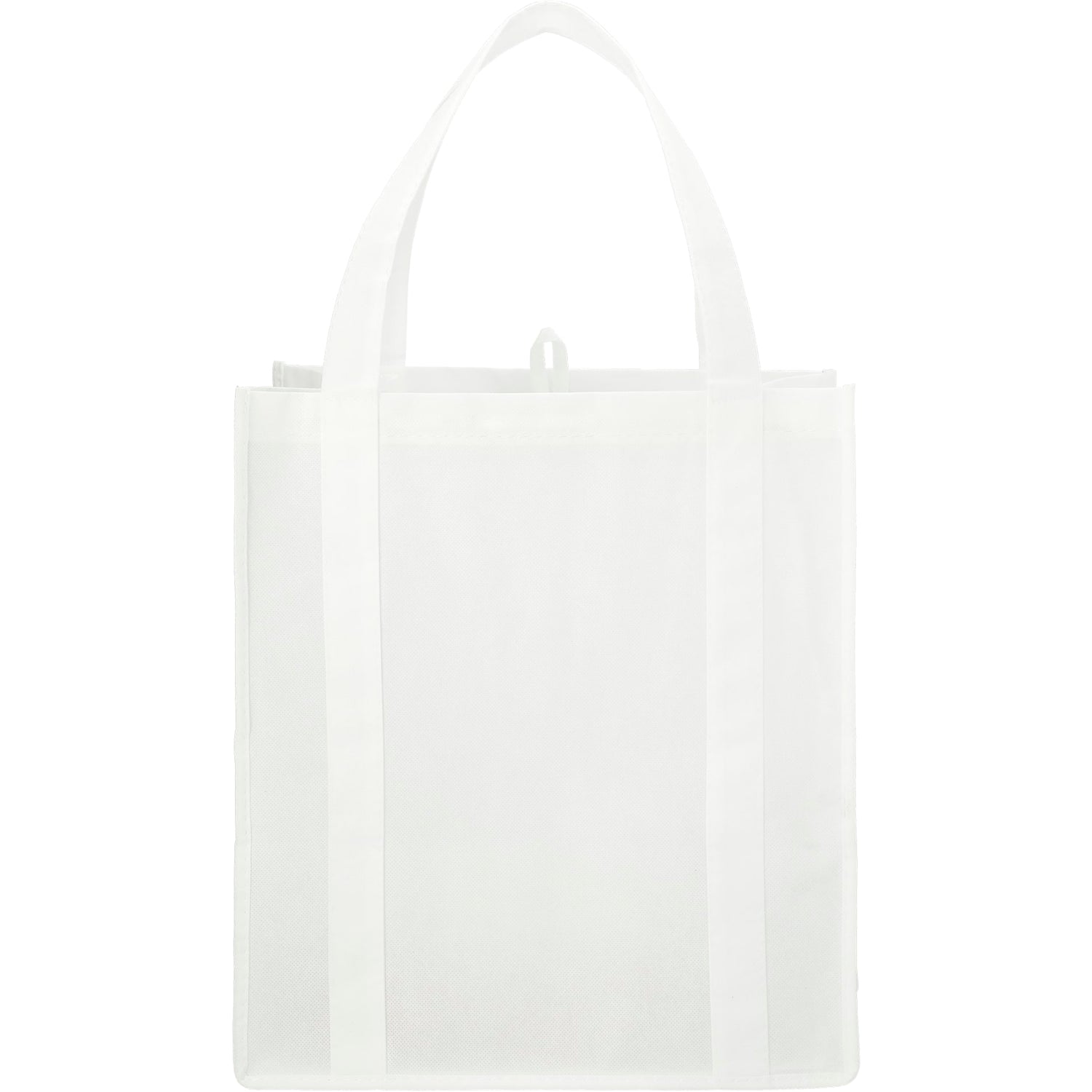 With its reusable design, the Hercules Non-Woven Grocery Tote offers a sustainable alternative to plastic grocery bags. It has lightweight polypropylene construction, features 18.5" reinforced handles, and contains a supportive bottom board for added durability. Its spacious open main compartment is ideal for carrying groceries or personal items, such as books, clothing, and electronics.