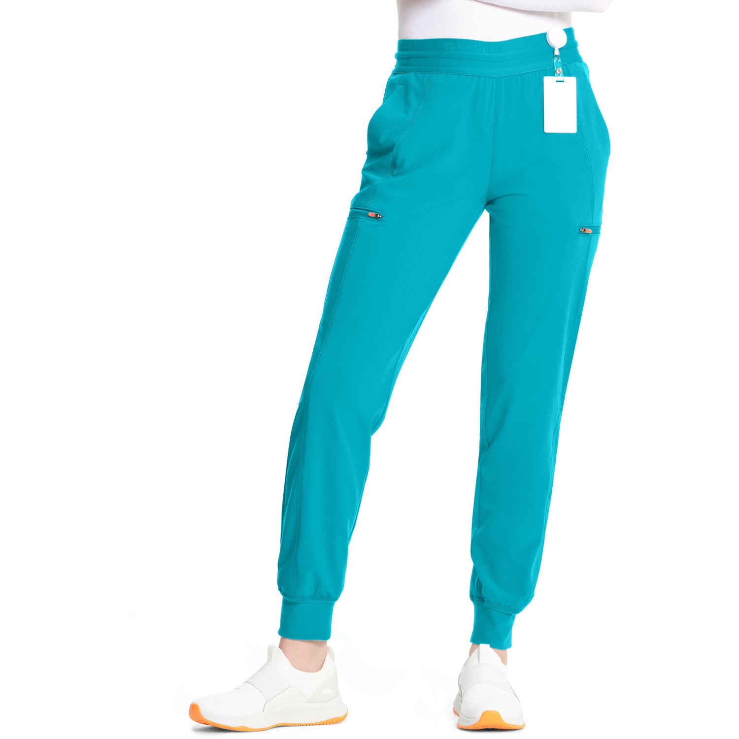 This Contemporary fit mid rise pull-on jogger has a logo elastic waistband with an interior drawstring. There are four pockets: two front in-seam pockets and two zipper cargo pockets with signature contrast mesh pocket bags. Contrast colored soft zipper pull for easy grip. Other features include a curved back yoke seam plus curved rib-knit front leg panels and cuffs. Tapered jogger leg, 9" opening. Inseam: 29"