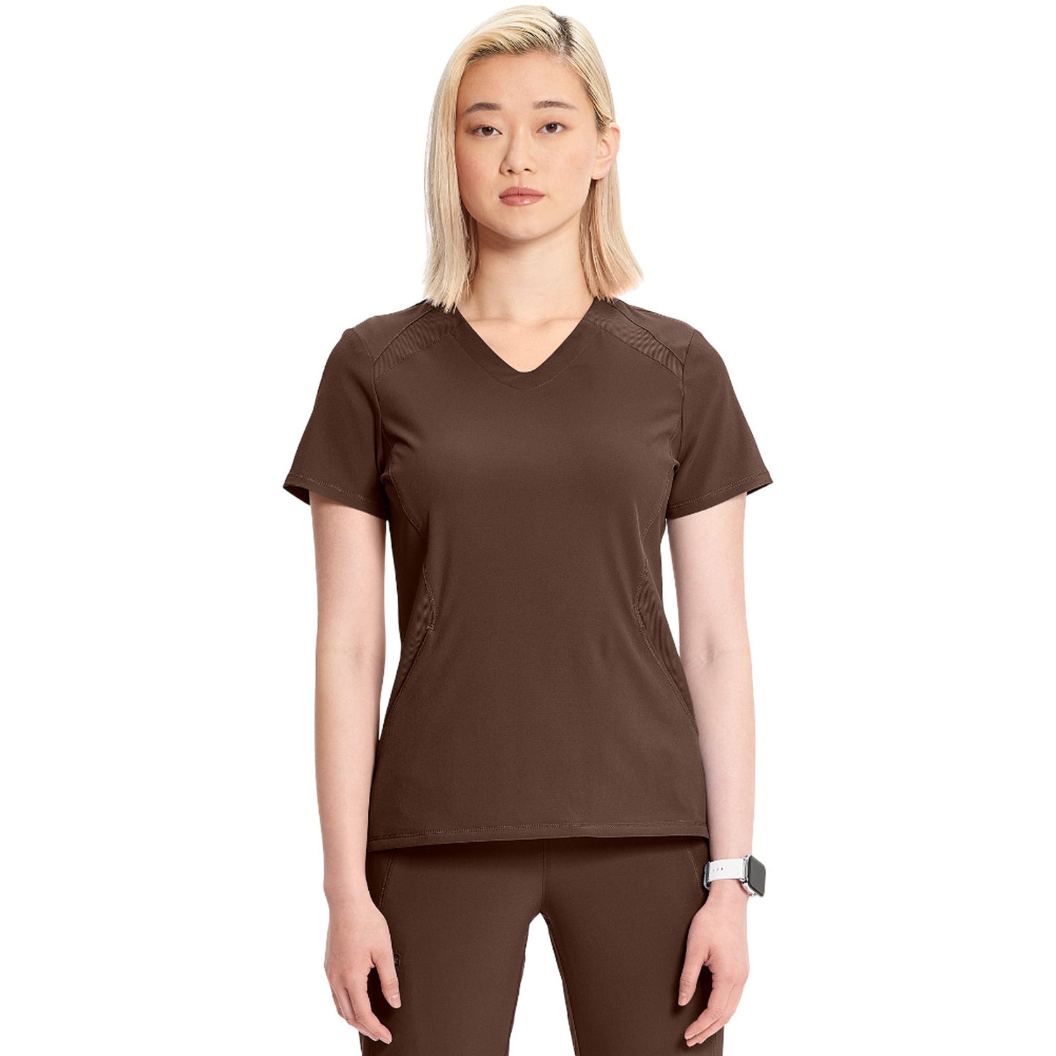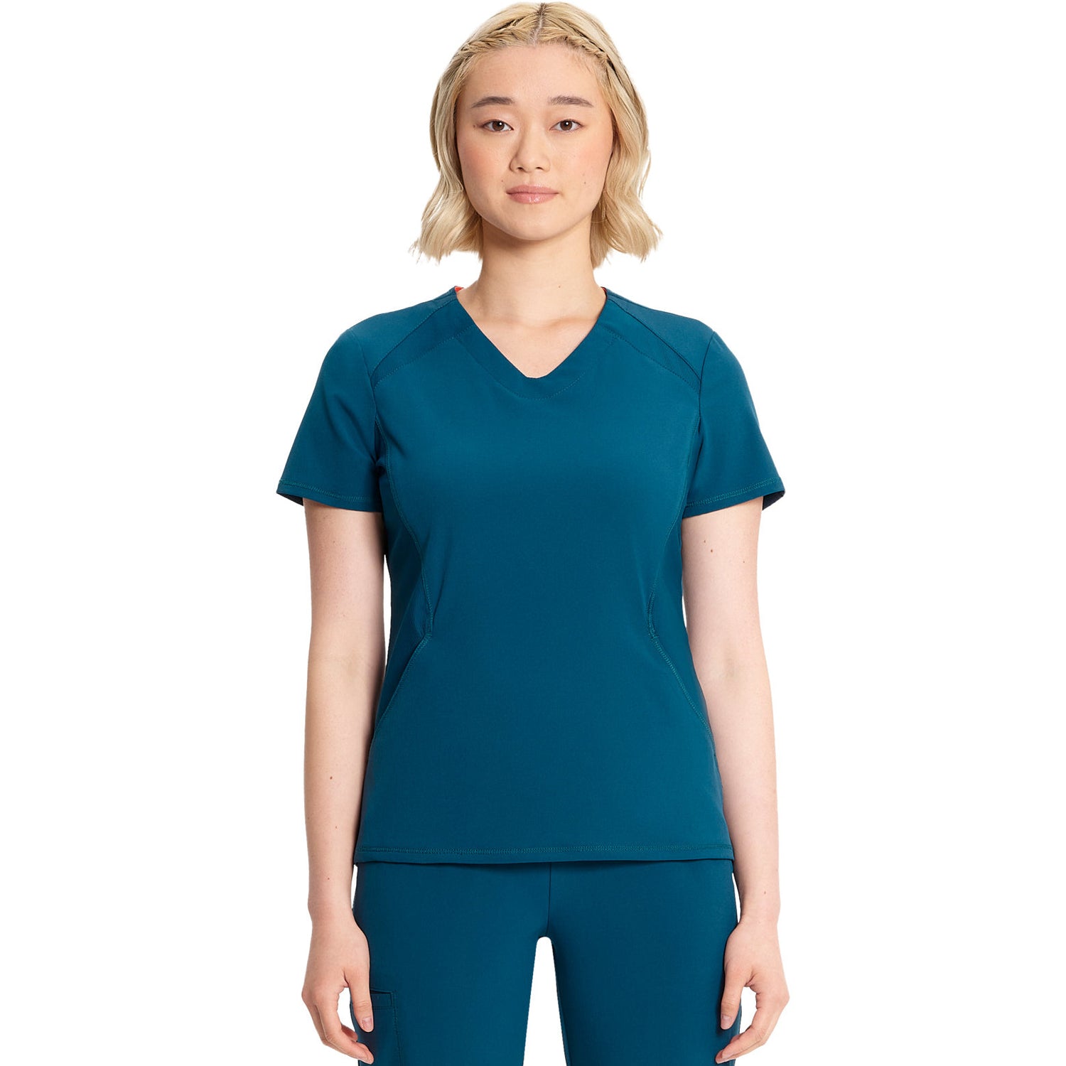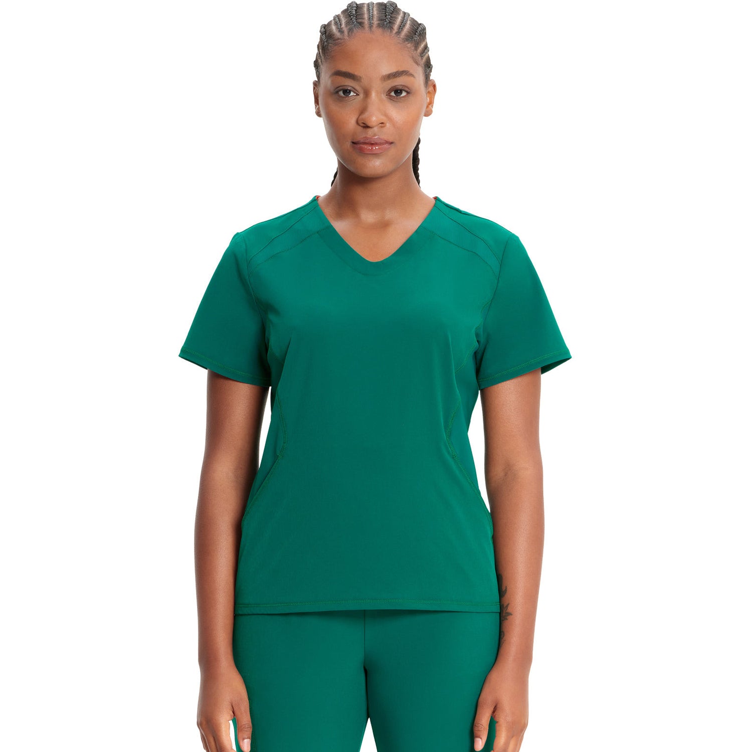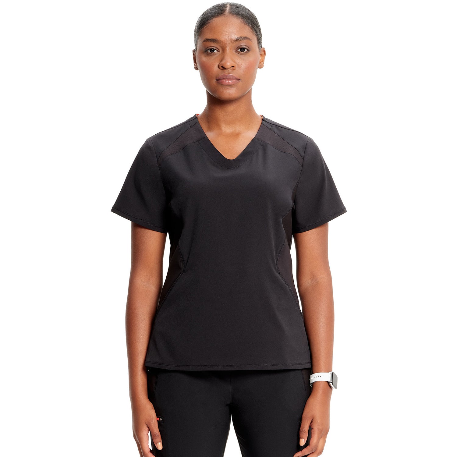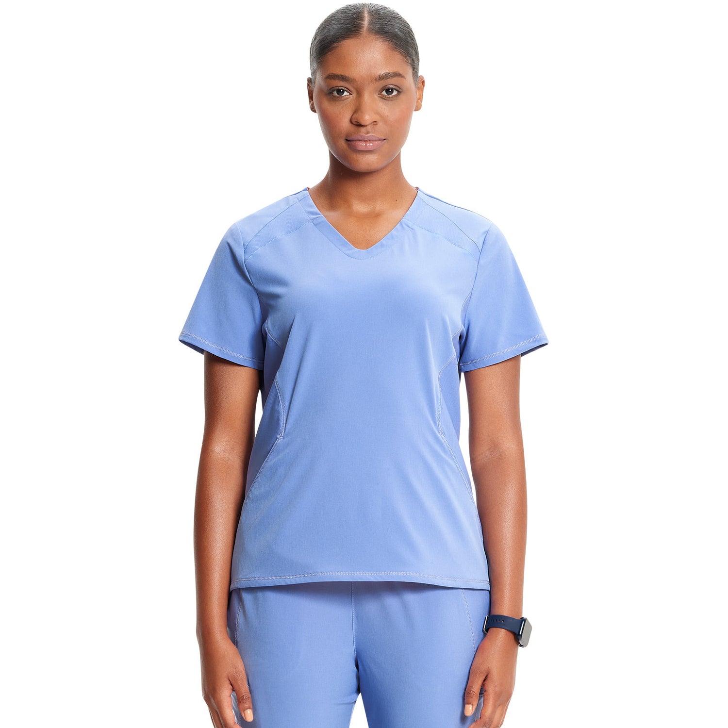 This Contemporary fit v-neck top has dyed-to-match rib-knit front yokes and sporty shaped side panels. A rib-knit back panel adds style and stretch. There is a roomy kangaroo pocket with signature contrast mesh pocket bag. Other features include a curved back yoke seam and a rounded high-low hem. Center back length: 25 ½"