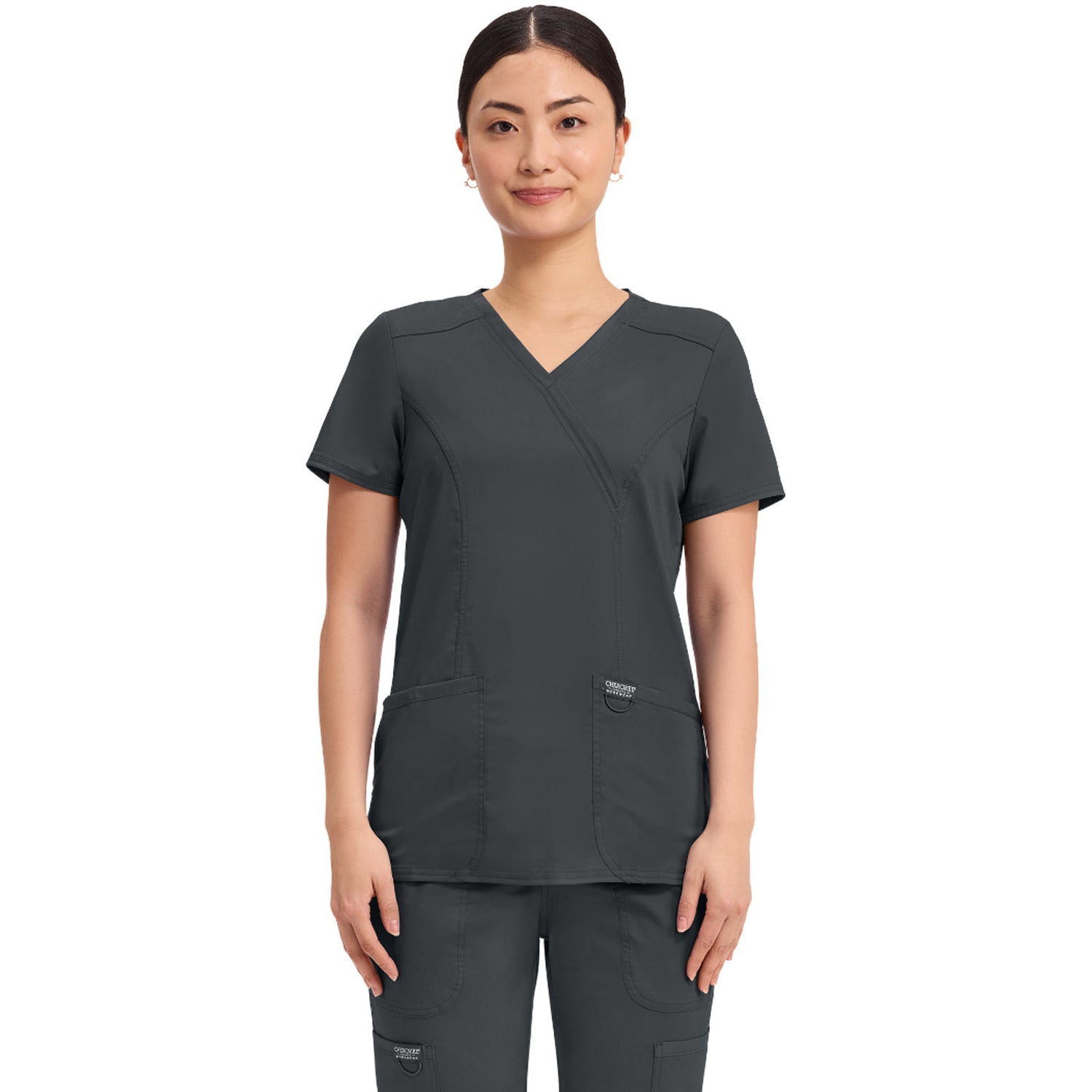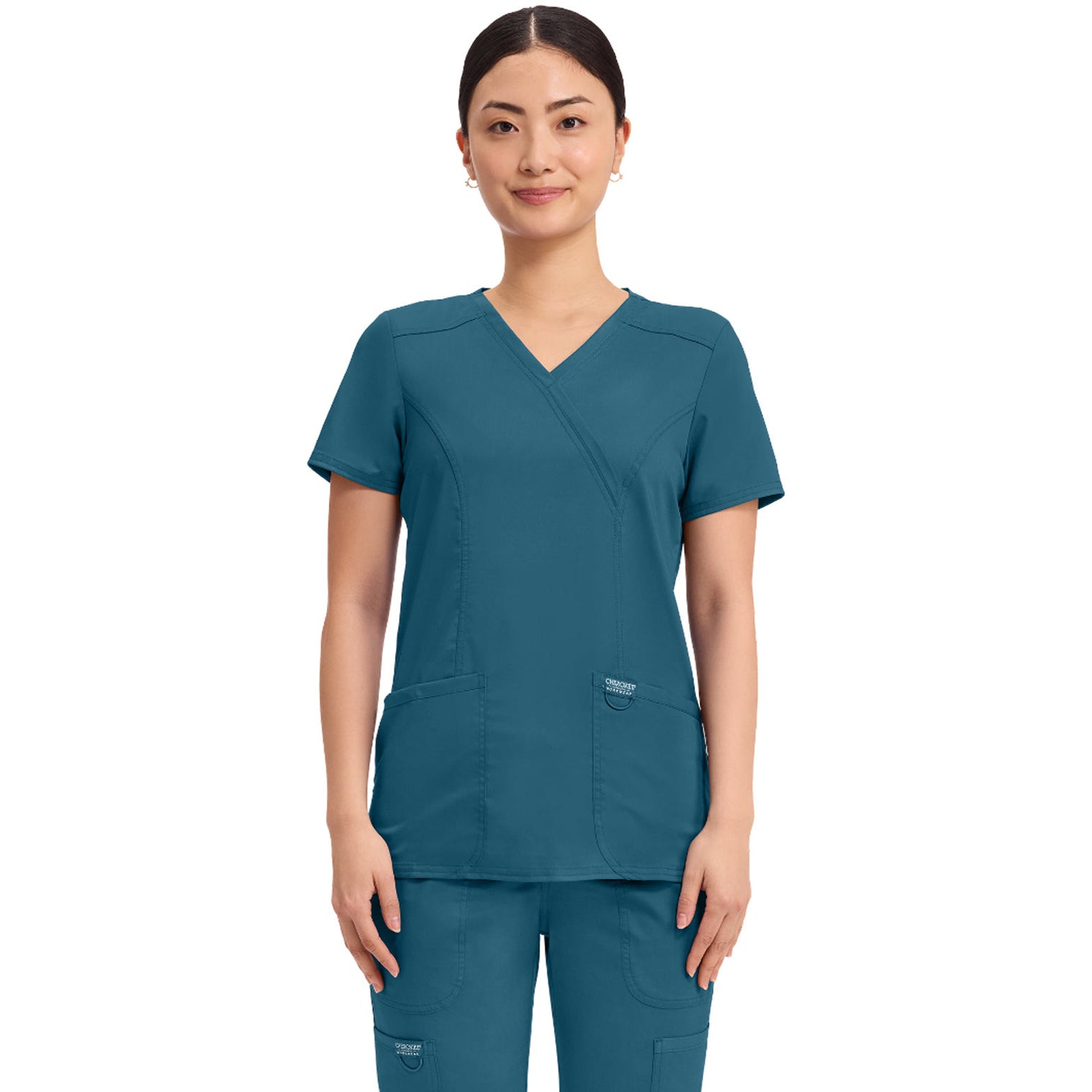 Cherokee Women's 2-Pocket Mock Wrap Top