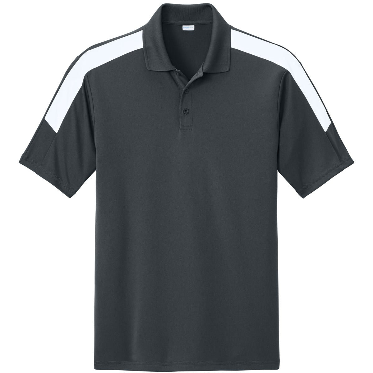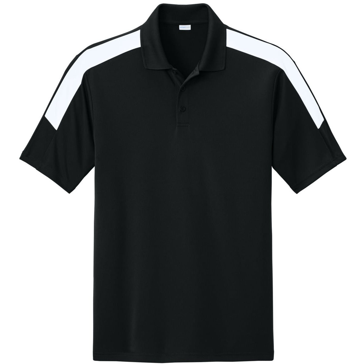 Support your team with this moisture-wicking polo. 3.8-ounce, 100% poly interlock with PosiCharge technology UPF rating of 30+ Moisture-wicking Perfect for all-around team uniforming Flat knit collar Self-fabric neck tape 3-button placket Dyed-to-match buttons Colorblock shoulder panels Tear-away label