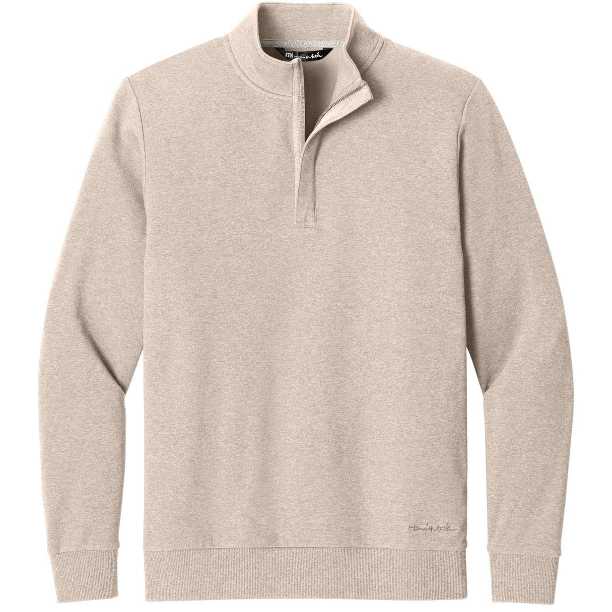 You've entered the ultimate comfort zone with these incredibly soft 1/4-zips. Setting a new standard in luxury, these elevated looks deliver extra warmth and unmistakable TravisMathew style. 6.8-ounce, 49/47/4 cotton/polyester/elastane 49/46/5 cotton/polyester/elastane (Black) Easy wash and wear Brushed interior fleece Zip-through collar Covered front zipper placket TravisMathew logo heat transfer at center back neck Rib knit cuffs and hem Embroidered TravisMathew logo at left hem