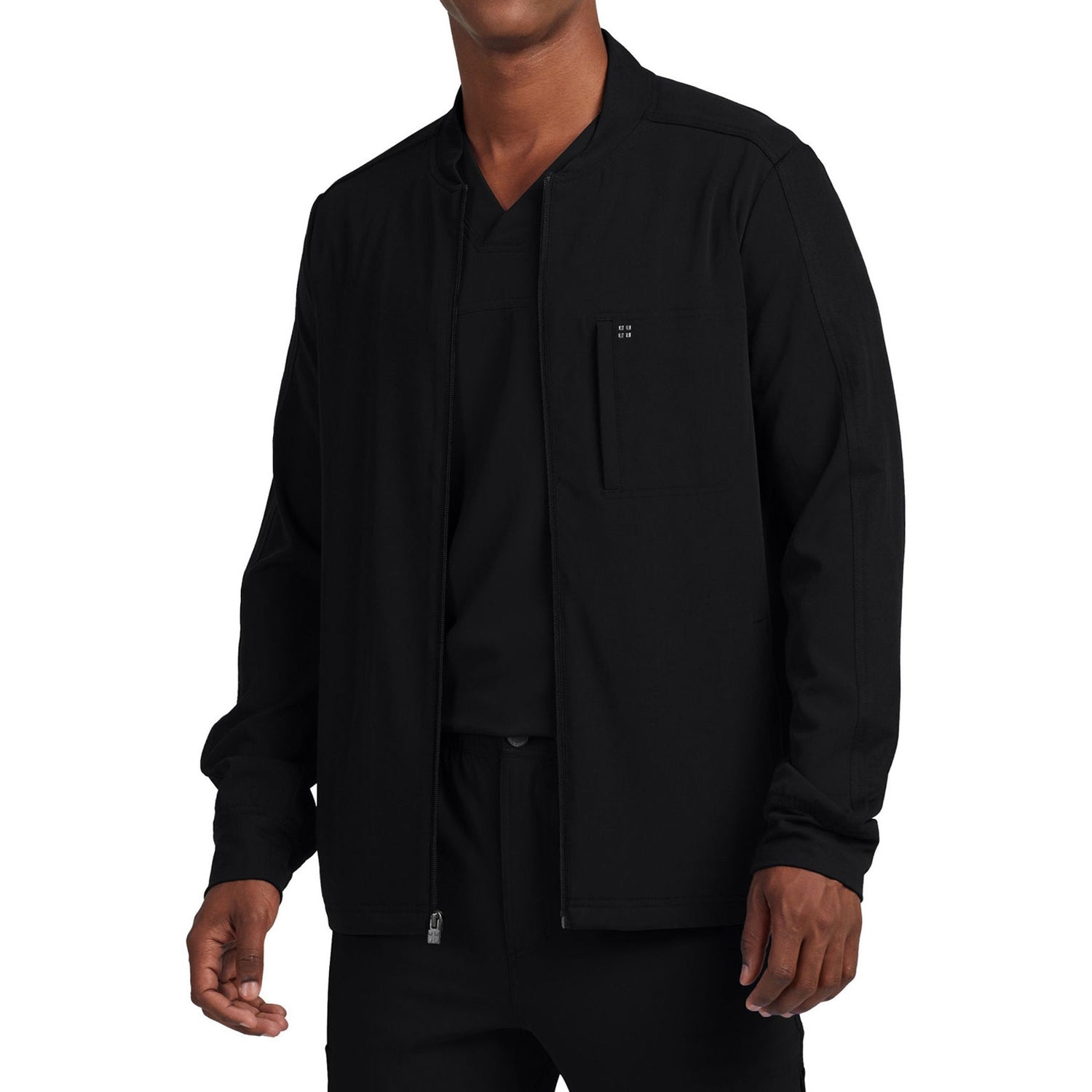 This Men's Fit front zip jacket has knit panel details where it counts. Soft knit at the collar, front and back yoke, down the arm and at the cuff provide added mobility and comfort. A total of 3 welt pockets, 1 with zipper closure at the chest to keep your important items secure, and 2 additional welt pockets.