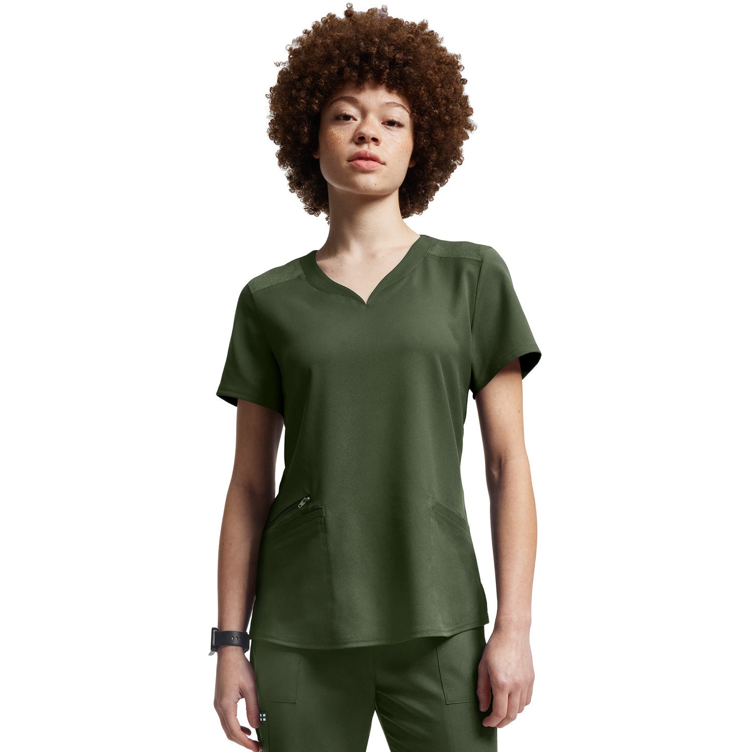 White Cross Women's Three-Pocket Curved V-Neckline Top